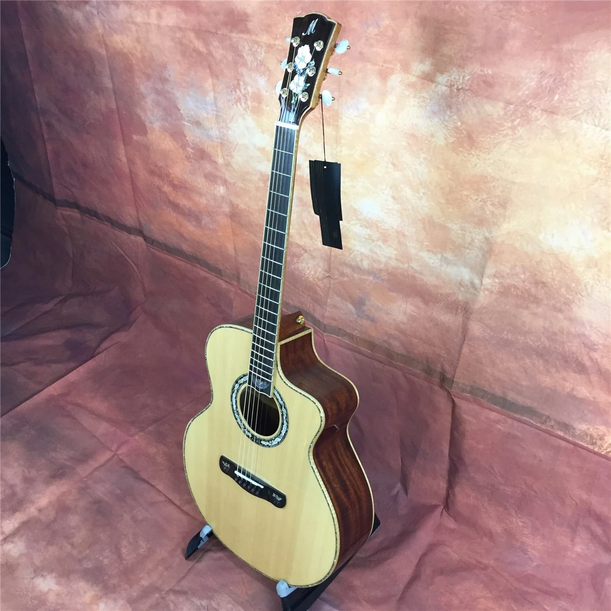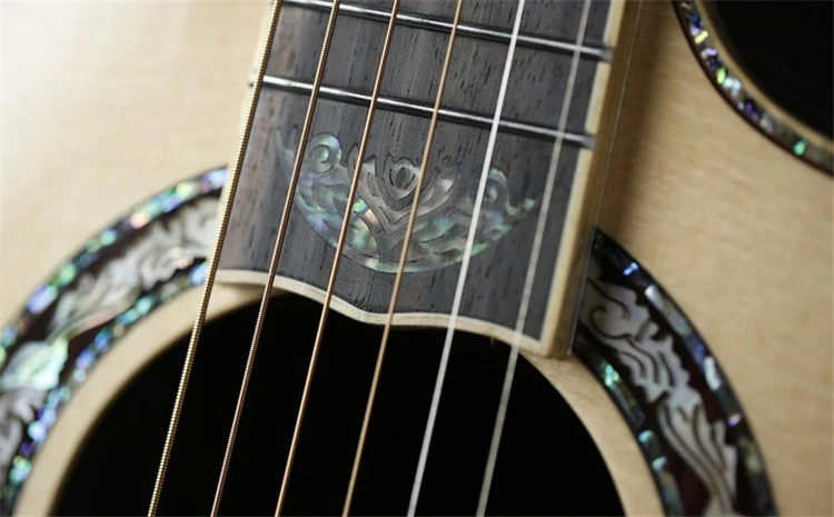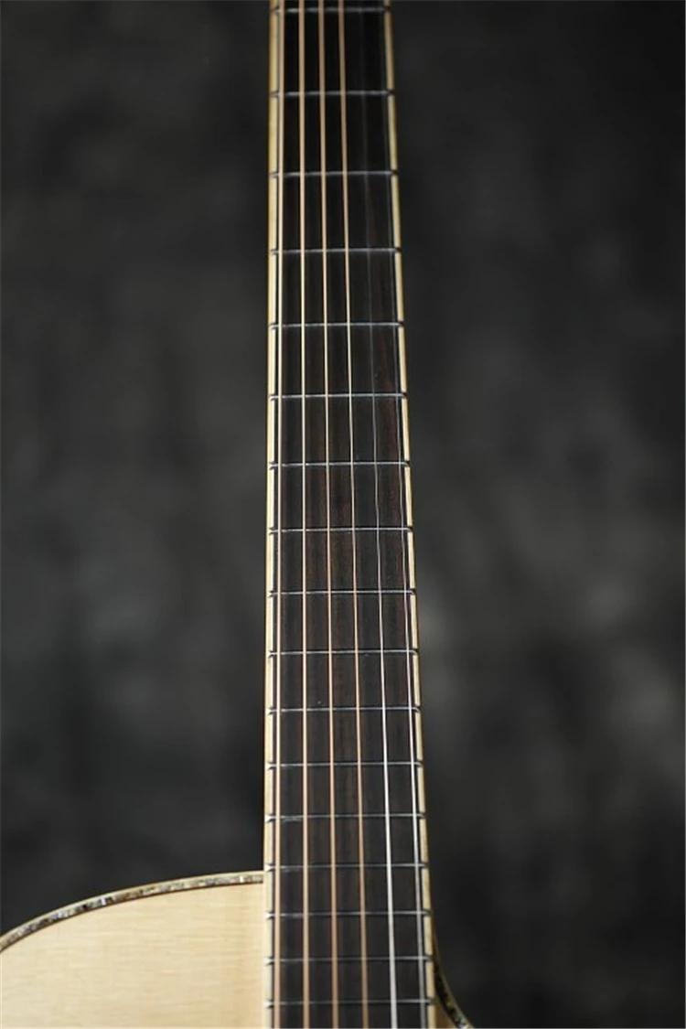 Модель: A72CS Форма корпуса: 41 дюйм GC cutway Верх: AAA однотонная ель engelmann Задняя и боковая сторона: сплошное розовое дерево Средства ухода за кожей Шеи: красное дерево Гриф и гриф: розовое дерево Гайка и седло: коровья кость Туннинговые машины: Сделано в Тайване Строка: Daddario EXP