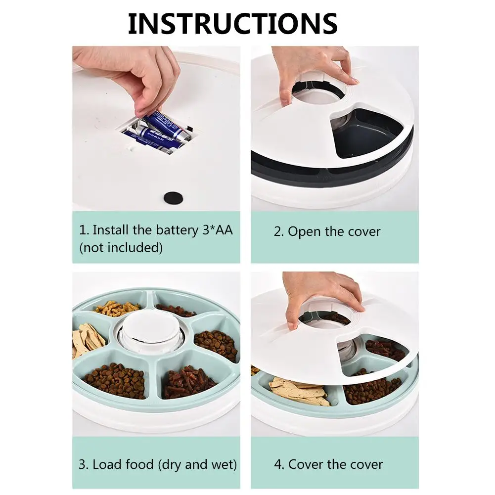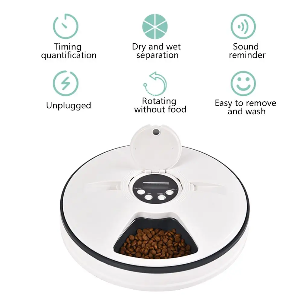 Новый модернизированный автоматический питатель для домашних животных, 6 блюд, распределительная беспилотная машина для кормления, автоматическая кормушка для собак, кошек, кроликов 4
