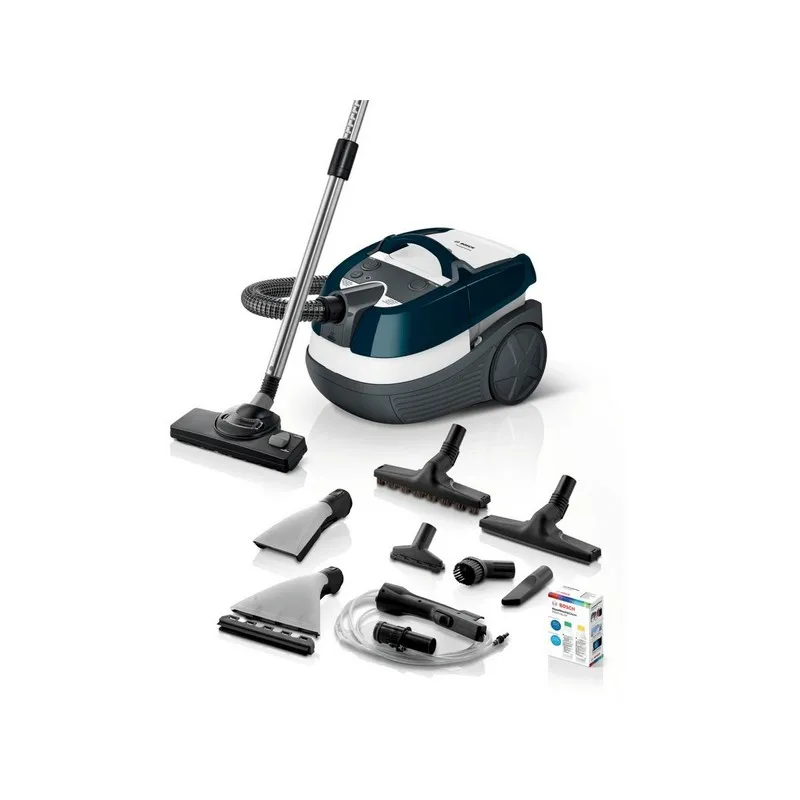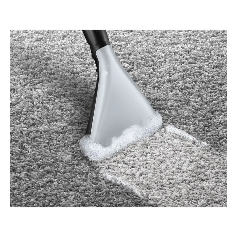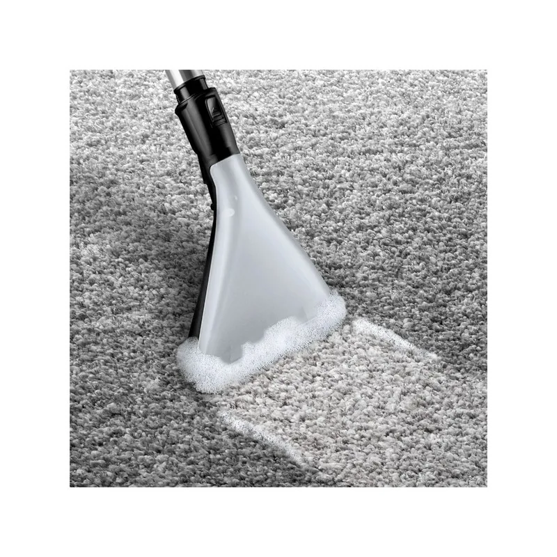 ГигиенаМоющийся EPA-фильтр - легко очищать под проточной водой.КомфортУниверсальная насадка ковер-пол со специальным отделителем - небольшие предметы, (например, ювелирные украшения), не попадут внутрь контейнера.Паркетная щетка, выполненная из натуральной щетины, обеспечивает первоклассный результат уборки на твердых полах.Гибкий и прочный шланг.Телескопическая трубаОбъем пылесборника: LАвтоматическая намотка кабеляБольшие колеса с мягкой поверхностью для защиты полаУдобная парковка и хранение прибораЭргономичная ручка упрощает процедуру очистки пылесборника.Удобная очистка контейнераРадиус действия: 9 мОбъем контейнера для воды: 5 л.Объем контейнера для сбора пыли: 1XАксессуарыБольшая моющая насадка для ковров и сбора жидкости.Маленькая моющая насадка для мебельной обивки.