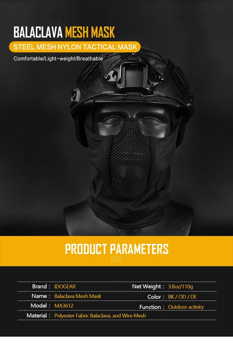 Тактическая Балаклава IDOGEAR, сетчатая страйкбольная маска, камуфляжная маска для всего лица