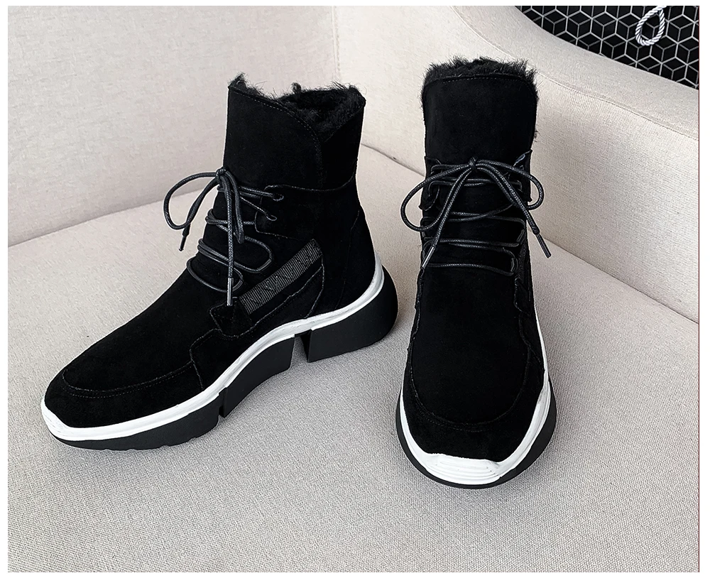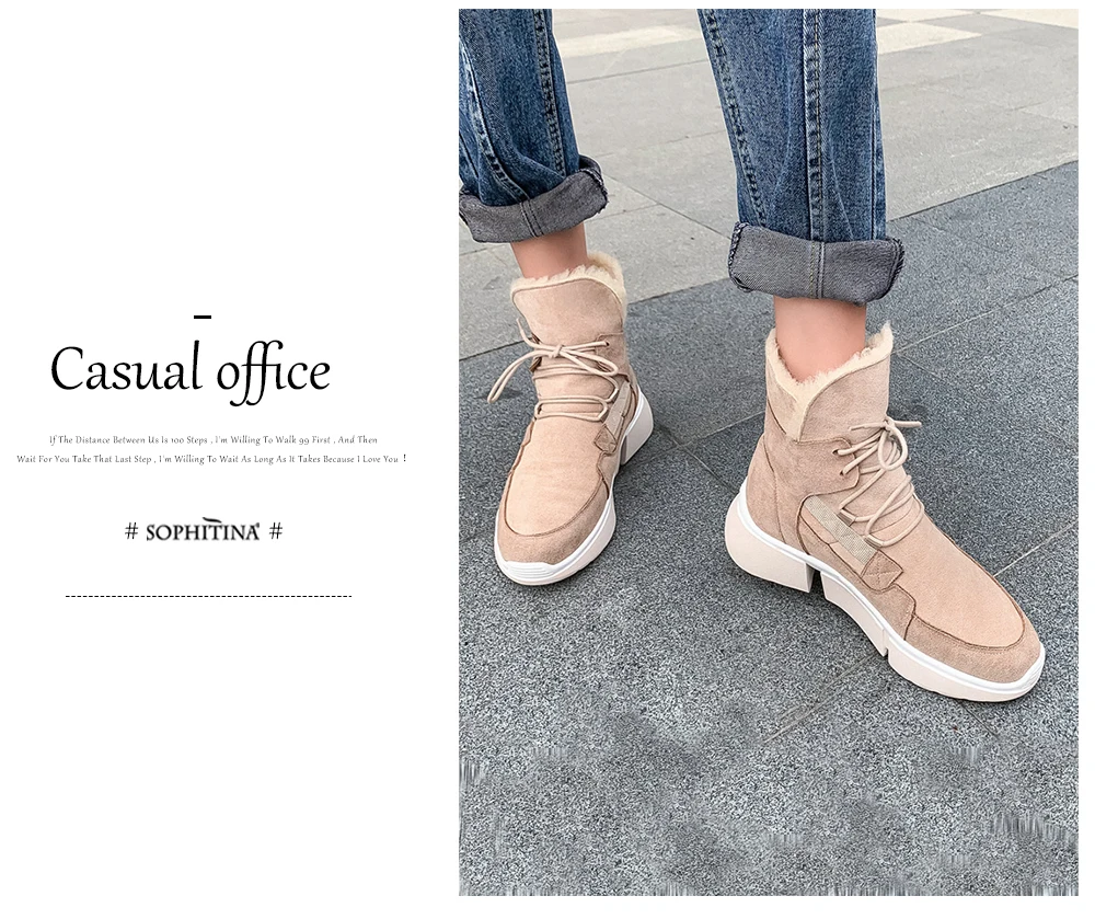 SOPHITINA/модные зимние ботинки; Высококачественная обувь из коровьей замши; Удобная обувь на шнуровке с круглым носком; Новая обувь на танкетке; Очень теплые женские ботинки; PO313