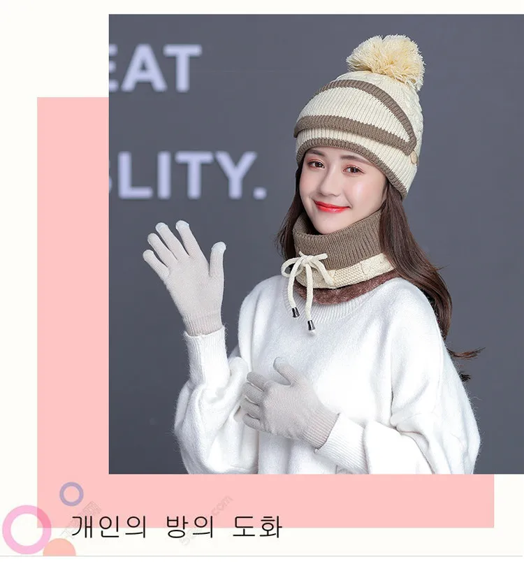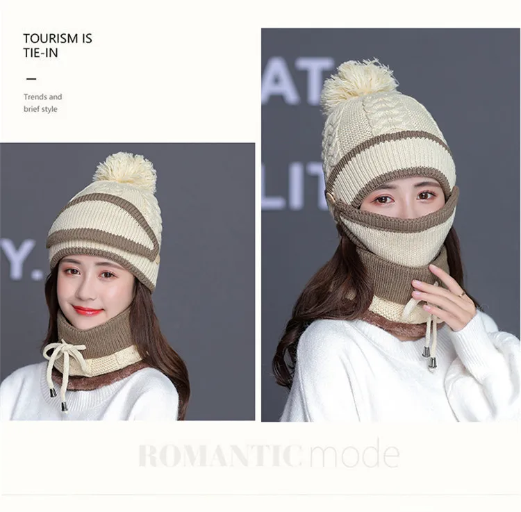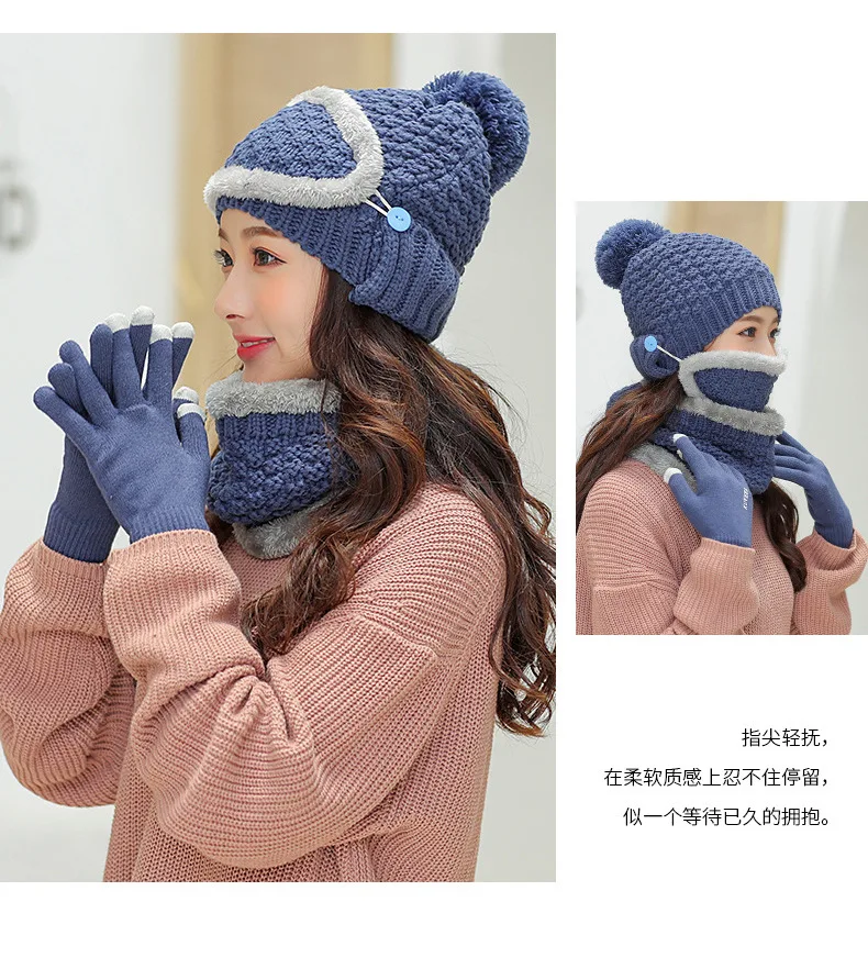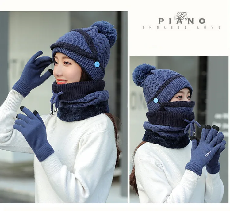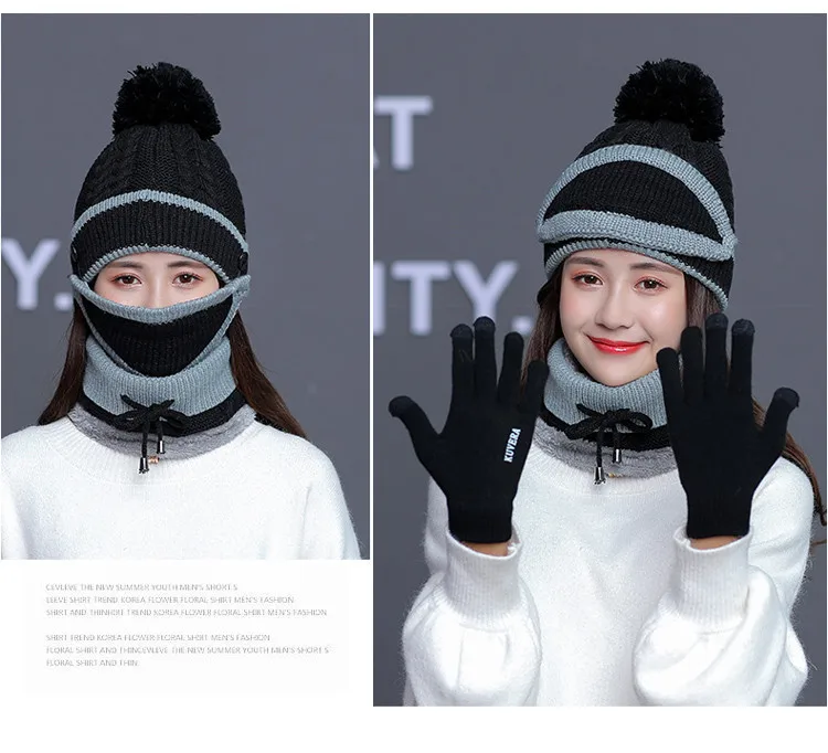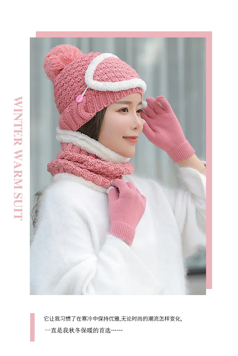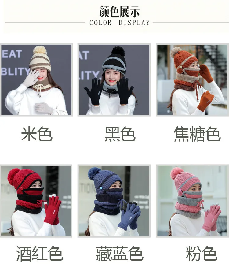 Осенне-зимний вязаный шерстяной плюшевый головной убор Набор для взрослых