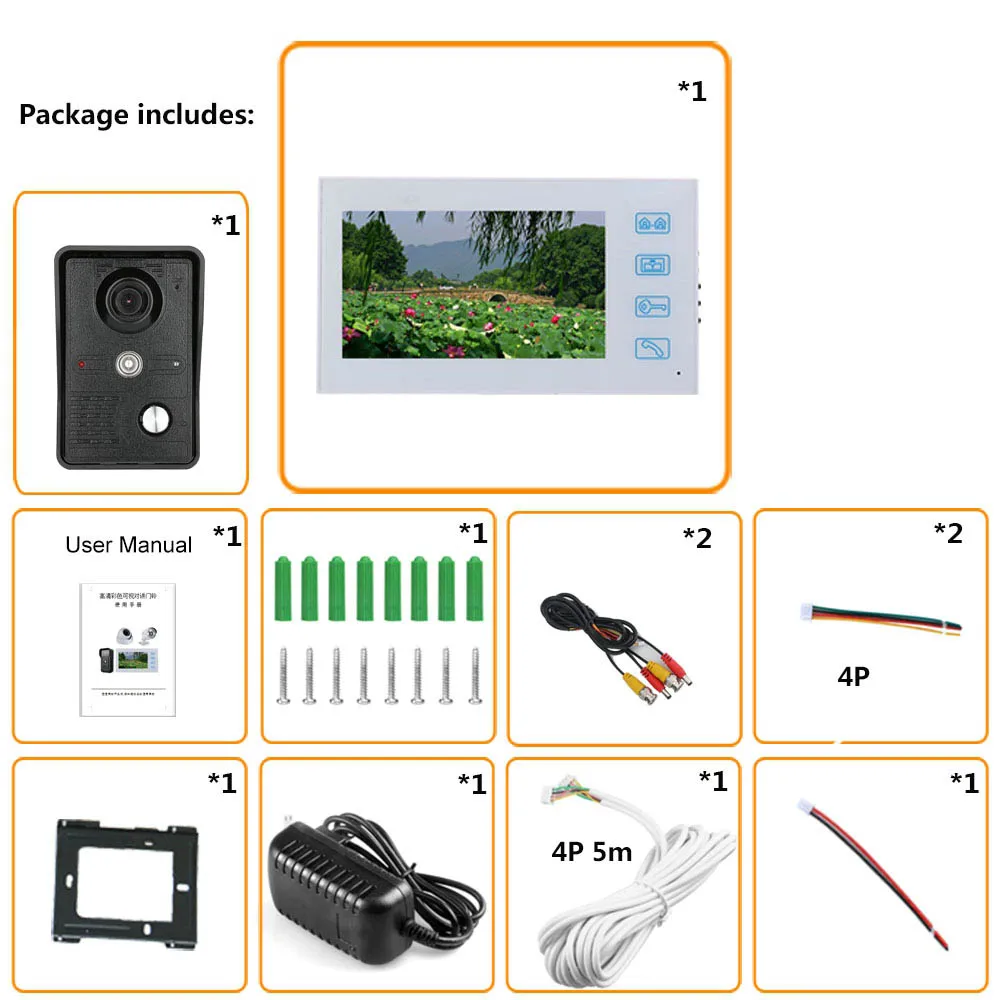 1080P 7 дюймов видео запись монитор проводной видео дверной звонок Домофон Система поддержка AHD 1080P камера