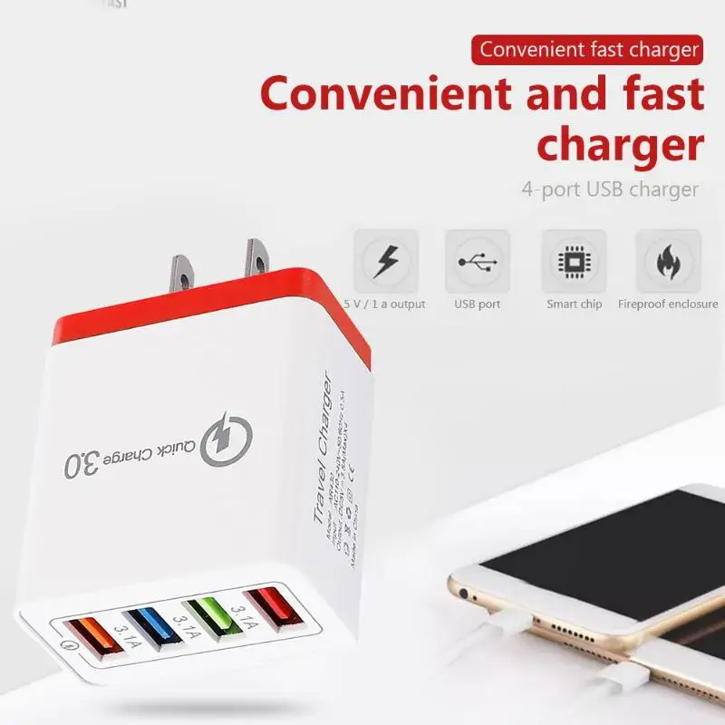 Портативное зарядное устройство с 4 портами, умное цветное Зарядное устройство USB 3A, зарядное устройство для быстрой зарядки, универсальное зарядное устройство с вилкой Стандарта США