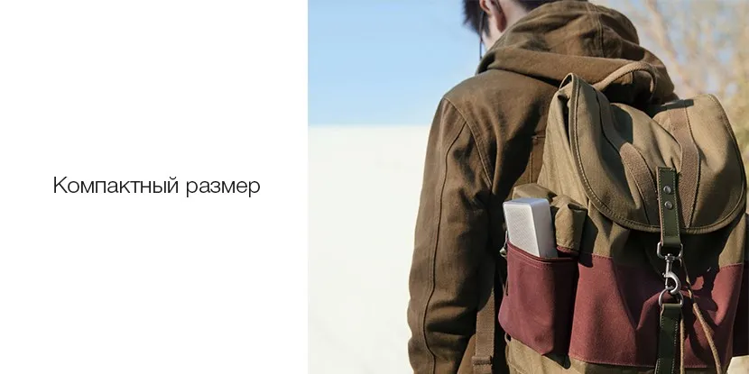 Внешние габариты колонки составляют всего 154.5 х 60 х 25.5 мм, а вес – 155 г. Благодаря таком компактному размеру, колонка легко поместится в рюкзак, а также будет удобна для охвата одной рукой.