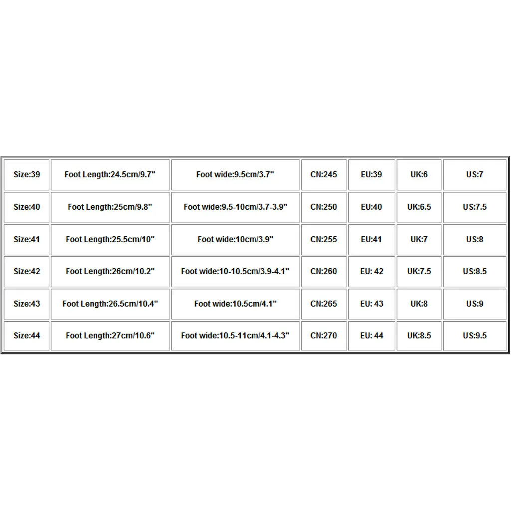 Размер Foot Длина При покупке обувь на широкую ногу CN ЕС Великобритания Свяжитесь с нами 39 24,5 см/9,7" 9,5 см/3,7" 245 39 6 7 40 25 см/9,8" 9,5-; высотка каблука 10 см/3,7-3,9" 250 40 6,5 7,5 41 25,5 см/10" Высота каблука 10 см/3,9" 255 41 7 8 42 26 см/10,2" 10-10,5 см/3,9-4,1" 260 42 7,5 8,5 43 26,5 см/10,4" 10,5 см/4,1" 265 43 8 9 44 27 см/10,6" 10,5-11 см/4,1-4,3" 270 44 8,5 9,5