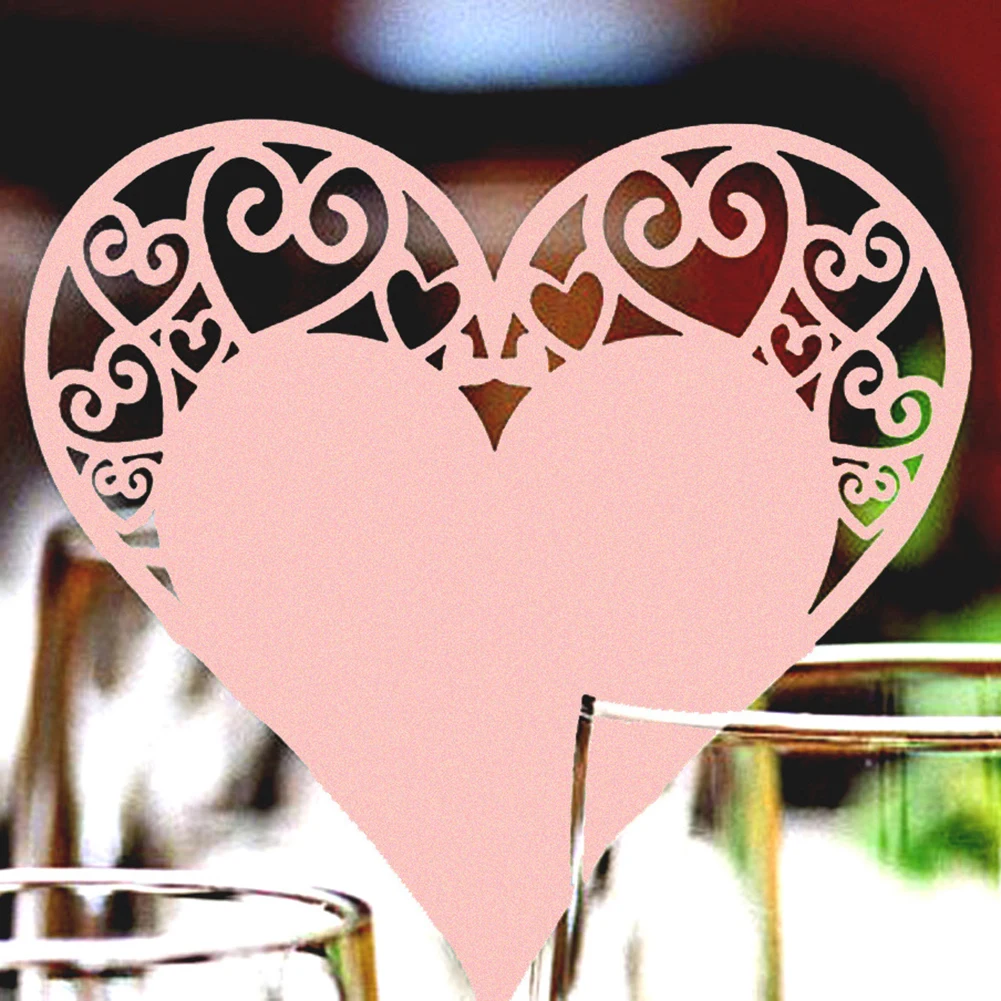 50 шт. полые, в форме сердца бокал для вина, чашки для стола, именные карты, декор для свадебной вечеринки