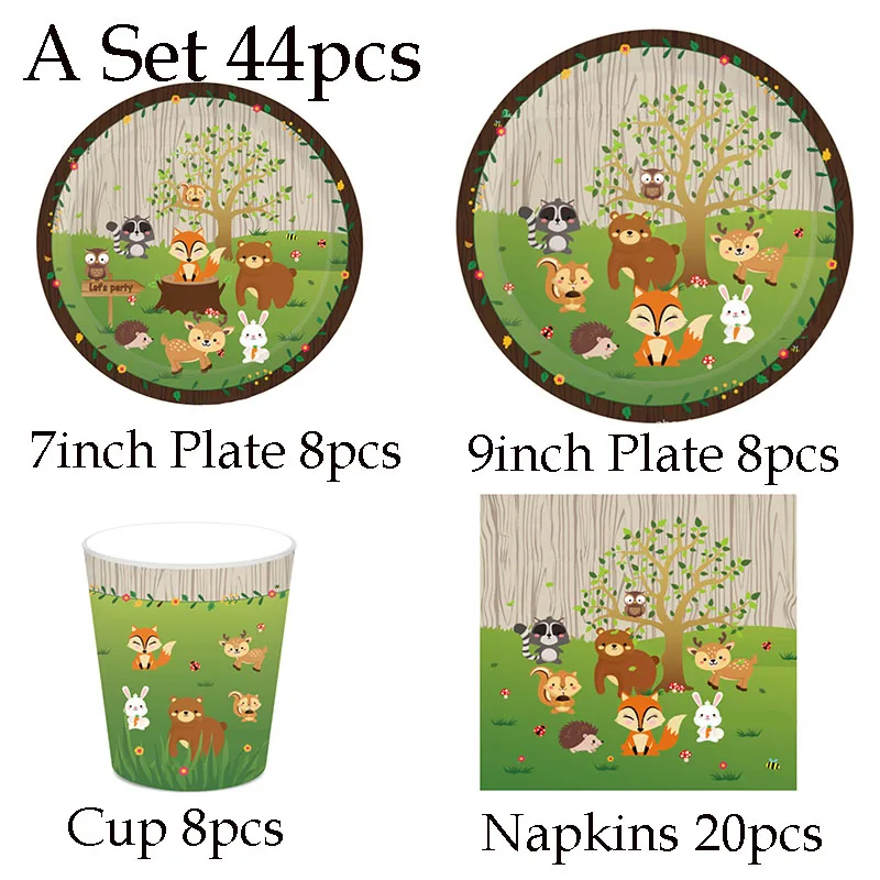 44 шт., набор одноразовой посуды с животными джунглей, Лесной сафари, детский день рождения, детский душ, вечевечерние тарелки с рисунками, чашки, принадлежности для декора