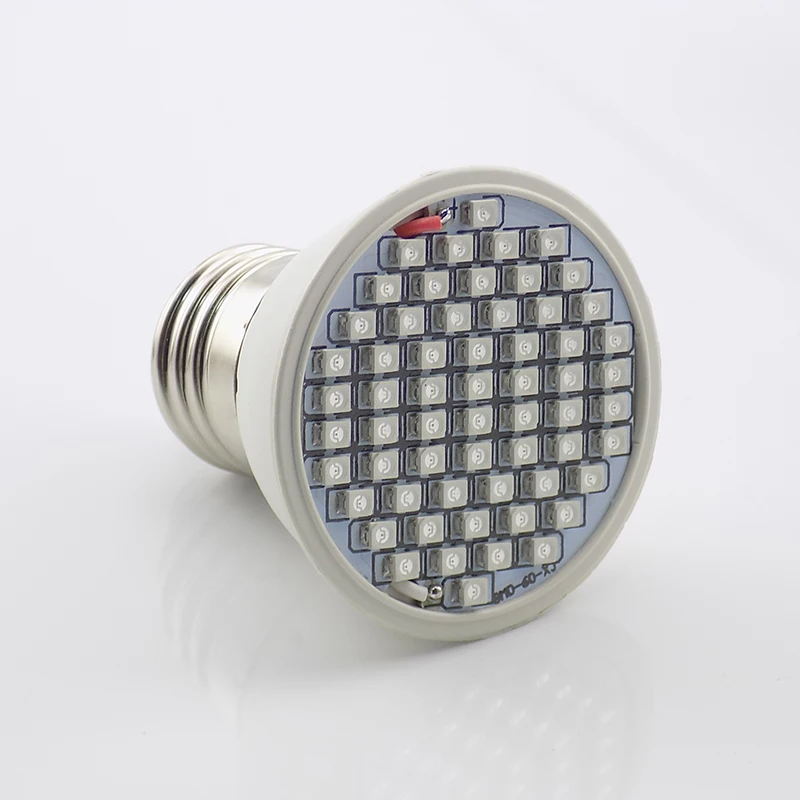 Параметры: Количество СВЕТОДИОДНЫЙ: 44red, 16 blue Напряжение: 85-265 В переменного тока Основание: E27 Светодиодный Длина волны: Красный 660нм, синий 445нм Светодиодный Тип: SMD3528 Мощность: 5 Вт Угол луча: 120 градусов Диаметр: 45 мм Длина: 55 мм
