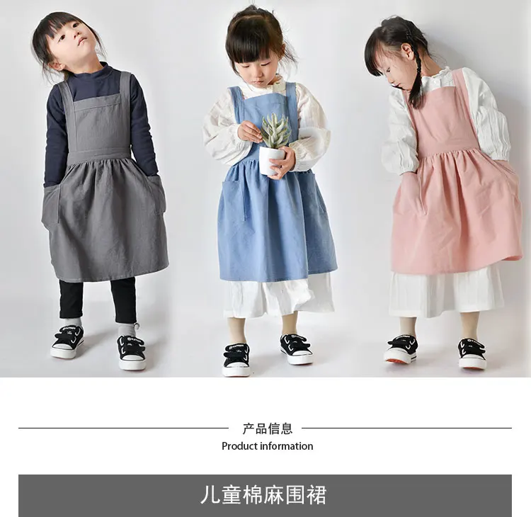 Льняная детская униформа из чистого хлопка, многократного использования, с высоким содержанием качественный фартук углерода, для кухни, выпечки, гончарной работы, рисования ручной работы