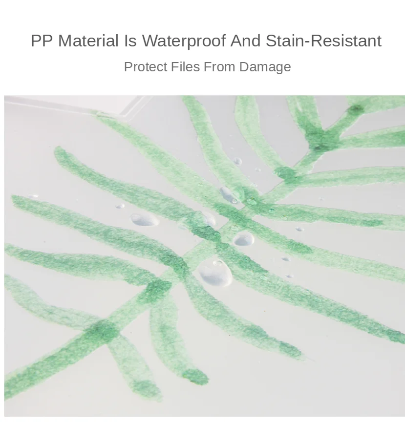 Полипропиленовый материал является водонепроницаемым и грязеотталкивающим, защищает документы от повреждений.
