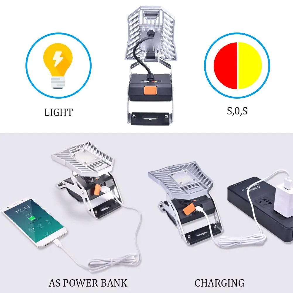 [Характеристики] легко переносить/устанавливать, аккумулятор большой емкости, можно заряжать мобильный телефон, угол освещения может быть гибко отрегулирован в соответствии с потребностями, многоугольное освещение