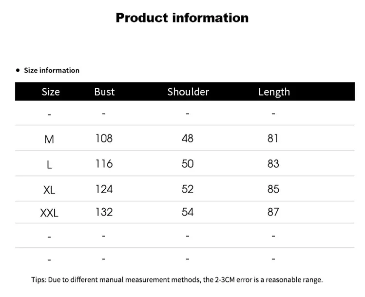Пожалуйста, проверьте таблицу размеров и сравните ее с вашей одеждой!