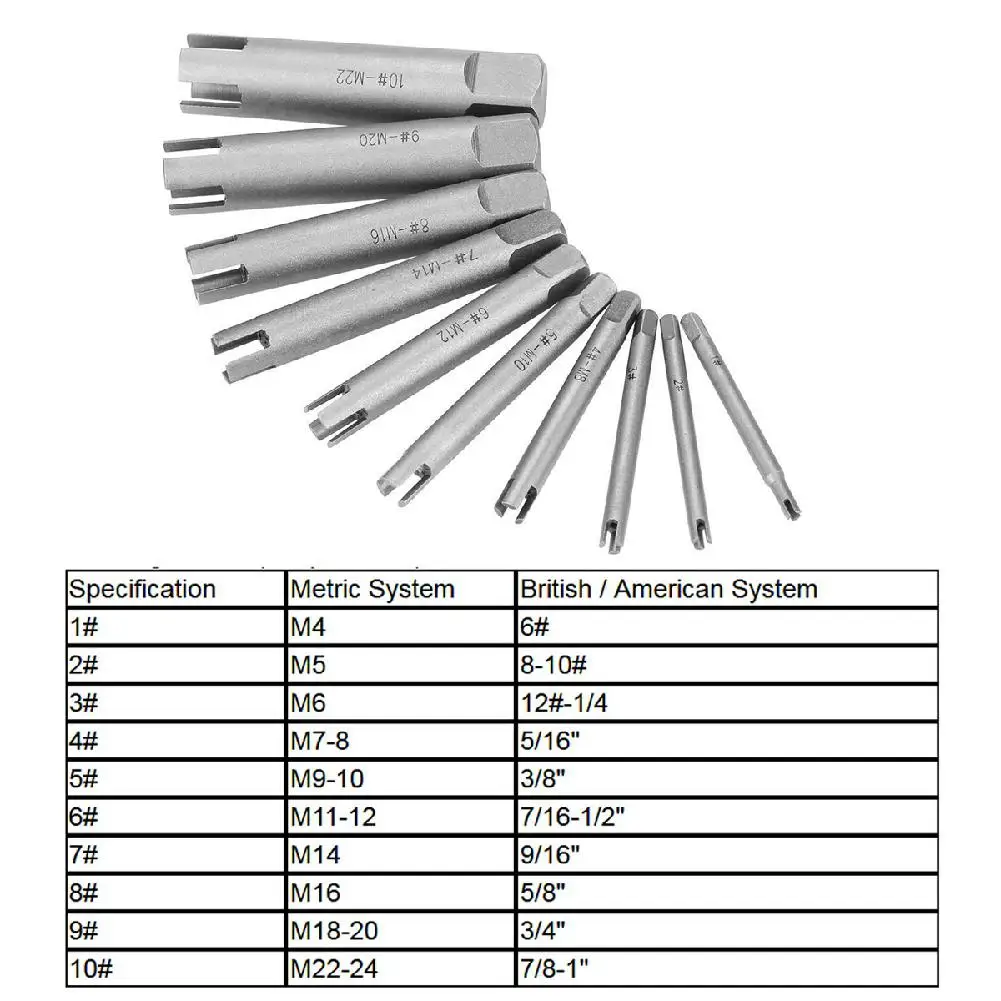 D-тип (10 шт.) :1 #-M4,2 #-M5,3 #-M6, 4 #-M8,5 #-M10,6 #-M12,7 #-M14,8 #-M16,9 #-M18-20,10 #-M22-24