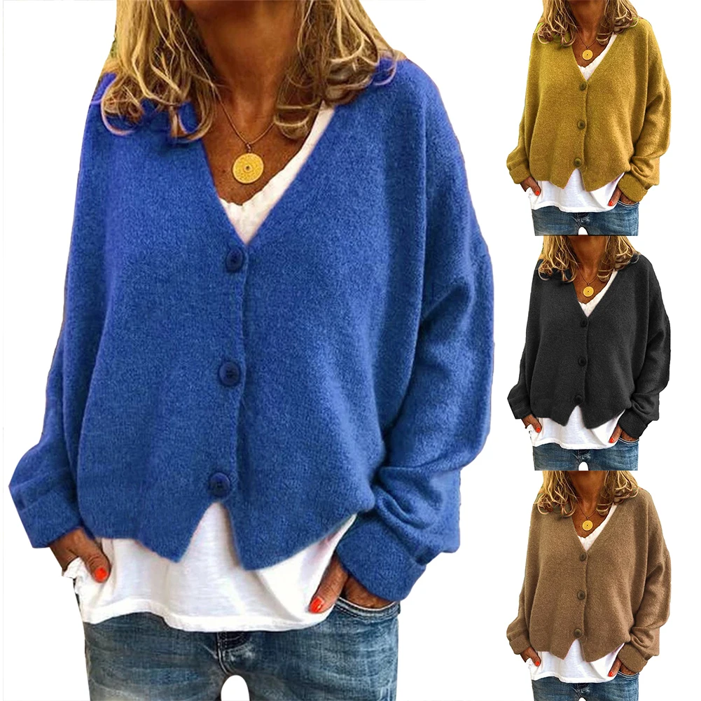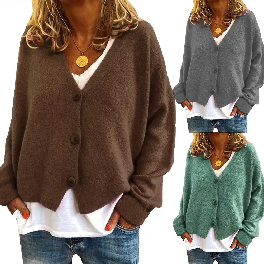Повседневный Женский Осенний однобортный Кардиган с длинным рукавом, вязаный свободный свитер