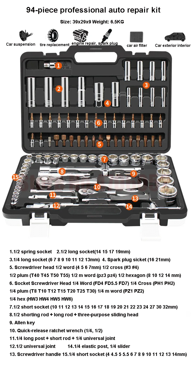 -Используется для затягивания или ослабления, подходит для большинства болтов, гаек, винтов в обслуживании автомобилей, механических, мотоциклов и т. д.