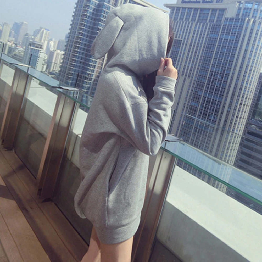 Женская толстовка с капюшоном, однотонная Свободная Толстовка с длинным рукавом