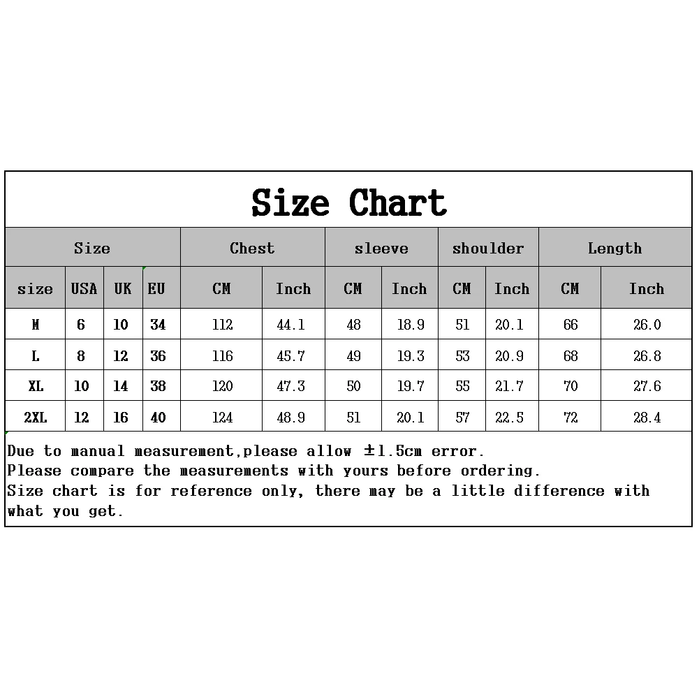 [Наши Размеры 2XL] Бюст: 124 см/48,9 ", длина рукава 51 см/20,1", плечо: 57 см/22,5 ", Длина: 72 см/28,4" (прибл.)
