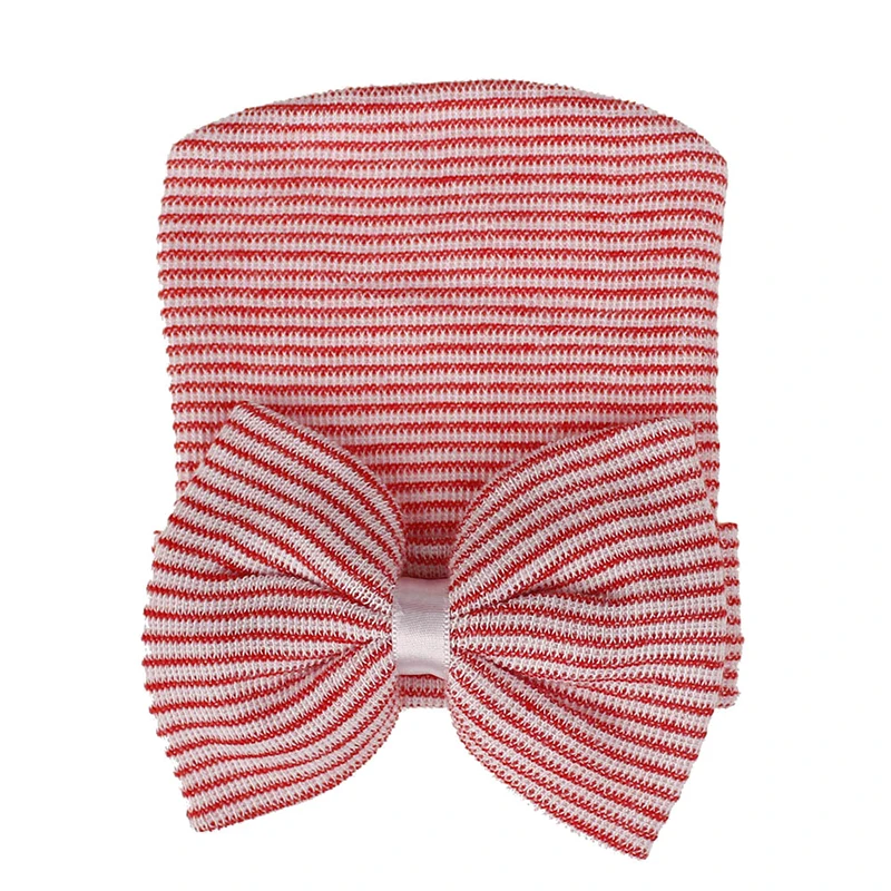 Вязаная шапка в полоску с большим бантом для малышей и девочек; Теплая шапочка