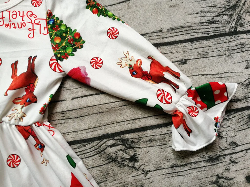 Рождественское праздничное платье принцессы с рисунком оленя для маленьких девочек