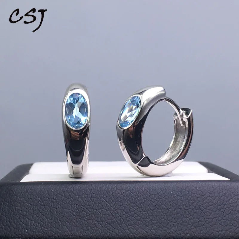 CSJ, простые ювелирные изделия из натурального небесно-голубого топаза, 925 пробы, серебряные серьги-гвоздики для женщин, для свадьбы, помолвки вечерние, подарок