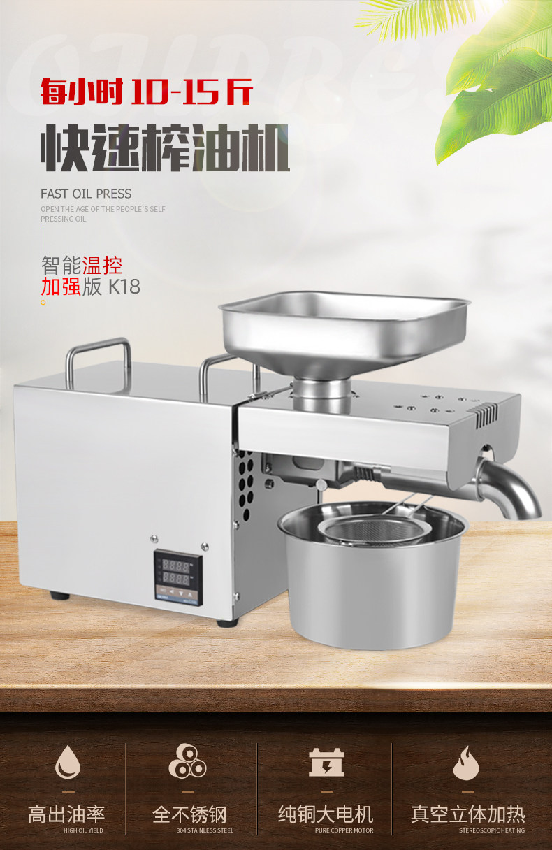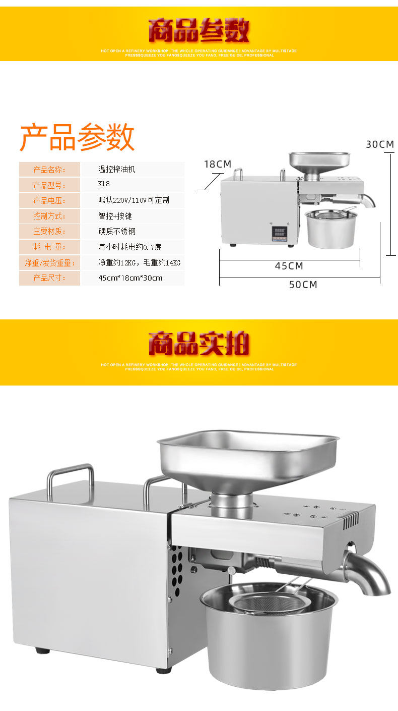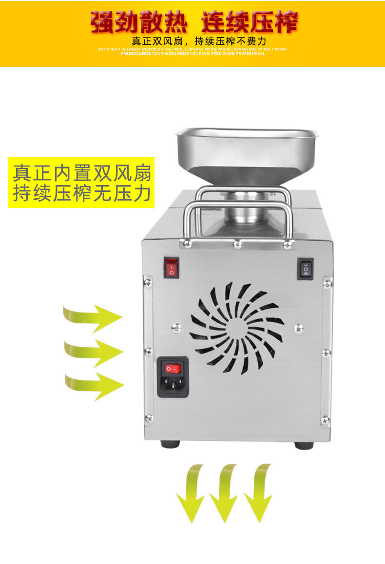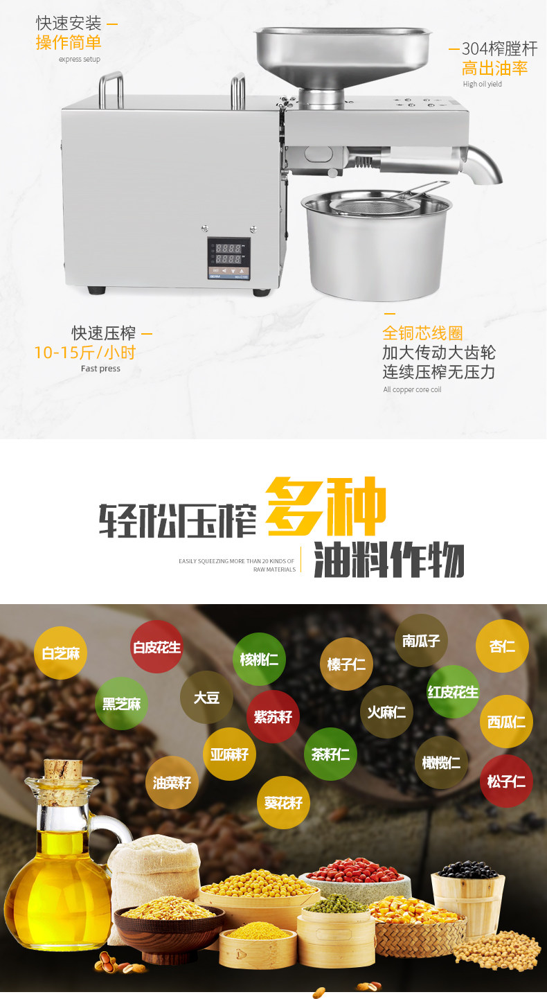 Параметры: материал s: нержавеющая сталь 304 Источник питания: 220 В/110 В Размер машины: 56 см * 18 см * 35 см Размер упаковки: 65 см * 30 см * 45 см Вес упаковки: 20 кг Номинальная мощность: 1000 Вт Максимальная мощность (acrotorque):1500 Вт шум: прибл.<50 дБ скорость извлечения масла: >99% содержания масла в материале