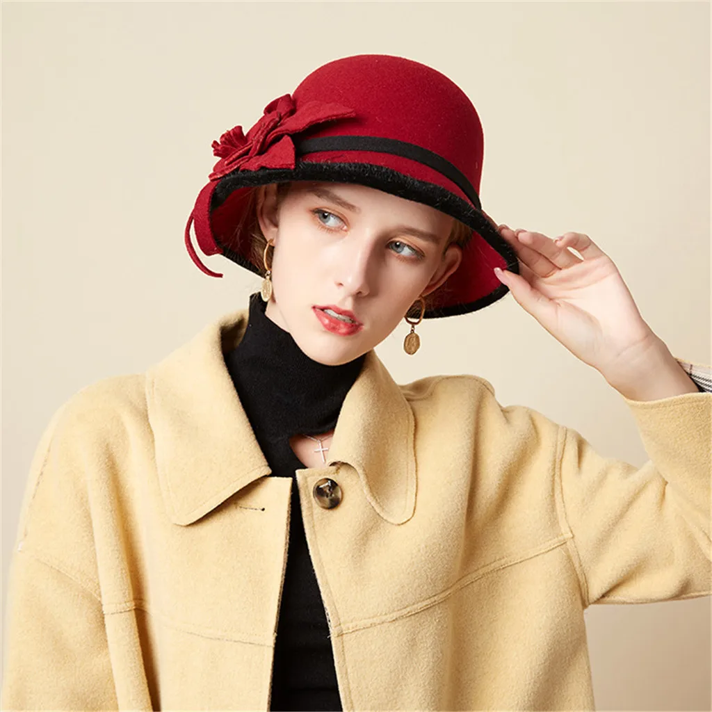 Британский стиль осень зима женские шерстяные фетровые федоры с кожаной