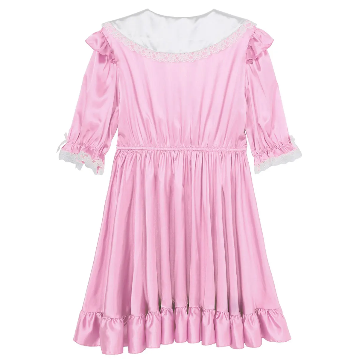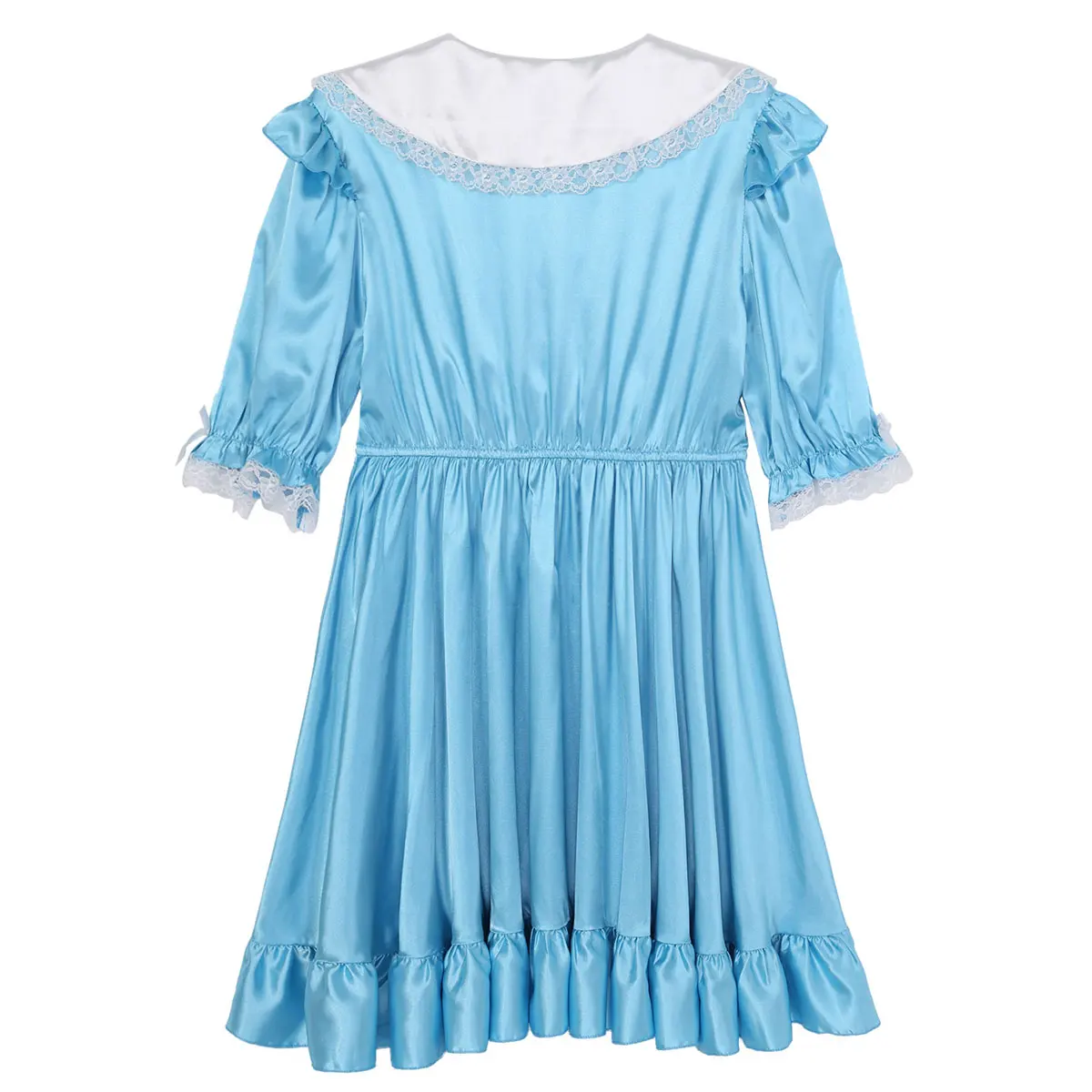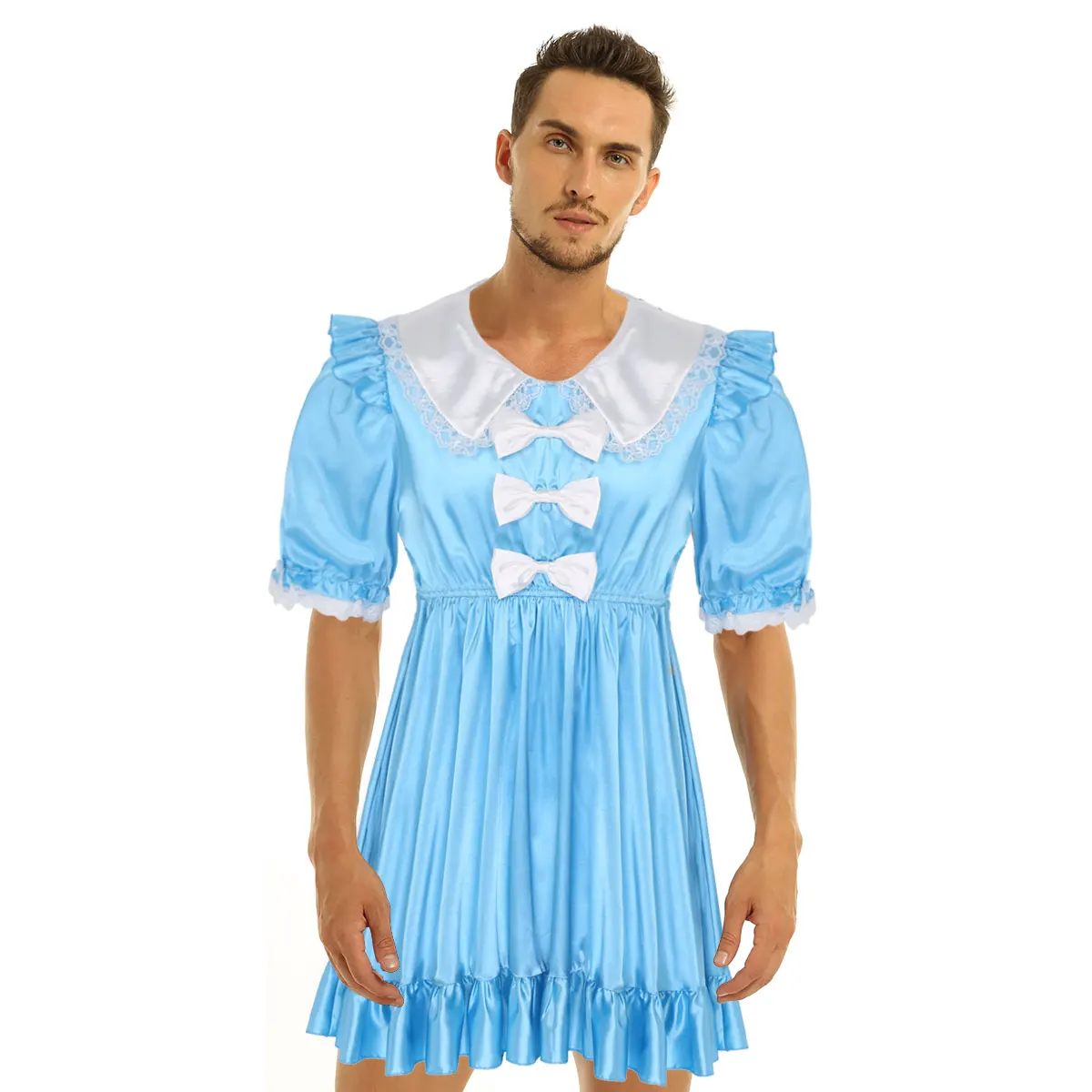 Мужские взрослые атласные неженкие Обрезанные кружева банты платье Крест Комод костюм, без застежки.