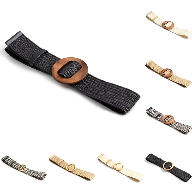 Богемный PP травяной Плетеный широкий пояс круглый деревянный квадратный пластиковый пояс с пряжкой