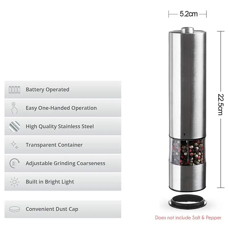 Высококачественные измельчители для соли и перца работают на батарейках и невероятно просты в использовании с их умным дизайном одной руки, так что вы можете приправить свою еду одним нажатием кнопки!