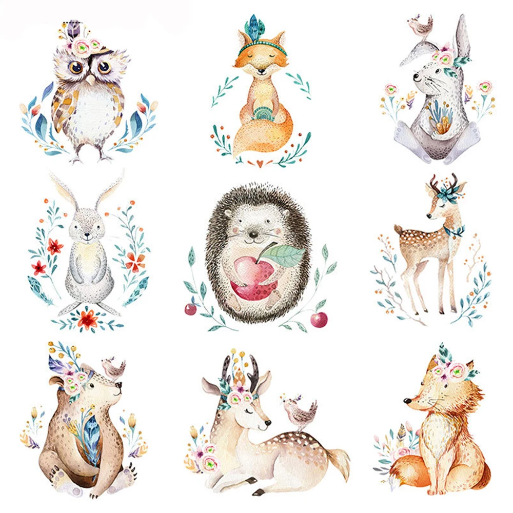 О: Название продукта: пластыри с теплопередачей Цвет: как показано на фотографиях Размеры: app.22x22cm Количество: купальное полотенце, 1 шт Посылка включает в себя: 1 x патч (другие демонстрационные аксессуары на картинке не включены.) B: Стиль: акварельные лесные животные Размер: как на фото Узор: Доступно 9 узоров Применение: детская одежда, футболки и т. Д. Посылка включает в себя: 1 * патч для передачи тепла