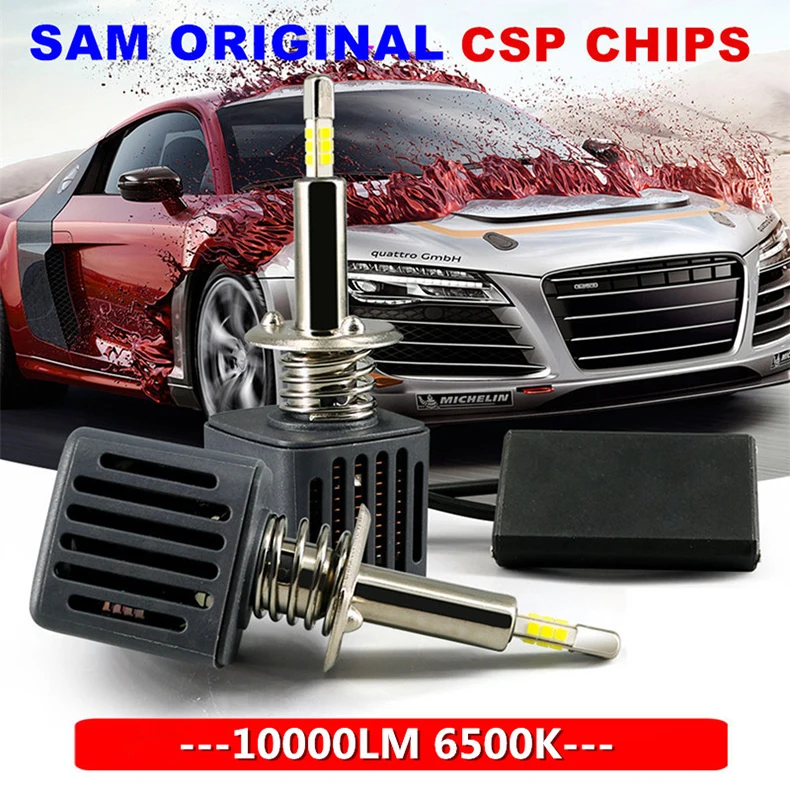 Светодиодный чип: оригинальный чип SAMSUNG CSP Световой поток: 10000LM Рабочее напряжение: 9-32 В постоянного тока (подходит для транспортных средств 12 В, 24 В) Цветовая температура: 5500 K/6500 K IP68 Номинальное уплотнение воды и пыли, угол луча 360 градусов Материал: авиационный 6063 алюминиевый профиль Рабочая температура:-40-+ 80 градусов Цельсия Использование: фара, противотуманная фара Водонепроницаемость: IP68 водонепроницаемый пылезащитный ударопрочный Двусторонний канал рассеивания тепла CANBUS: Эта Светодиодная лампа не имеет ошибок, не полностью canbus для specical car. EMC: Встроенный EMC, не нужно беспокоиться о радио. Модель автомобиля: для 99% автомобилей или транспортных средств (если вы не знаете о модели лампы для вашего автомобиля, пожалуйста, свяжитесь с нашей службой поддержки клиентов, мы можем вам помочь.)
