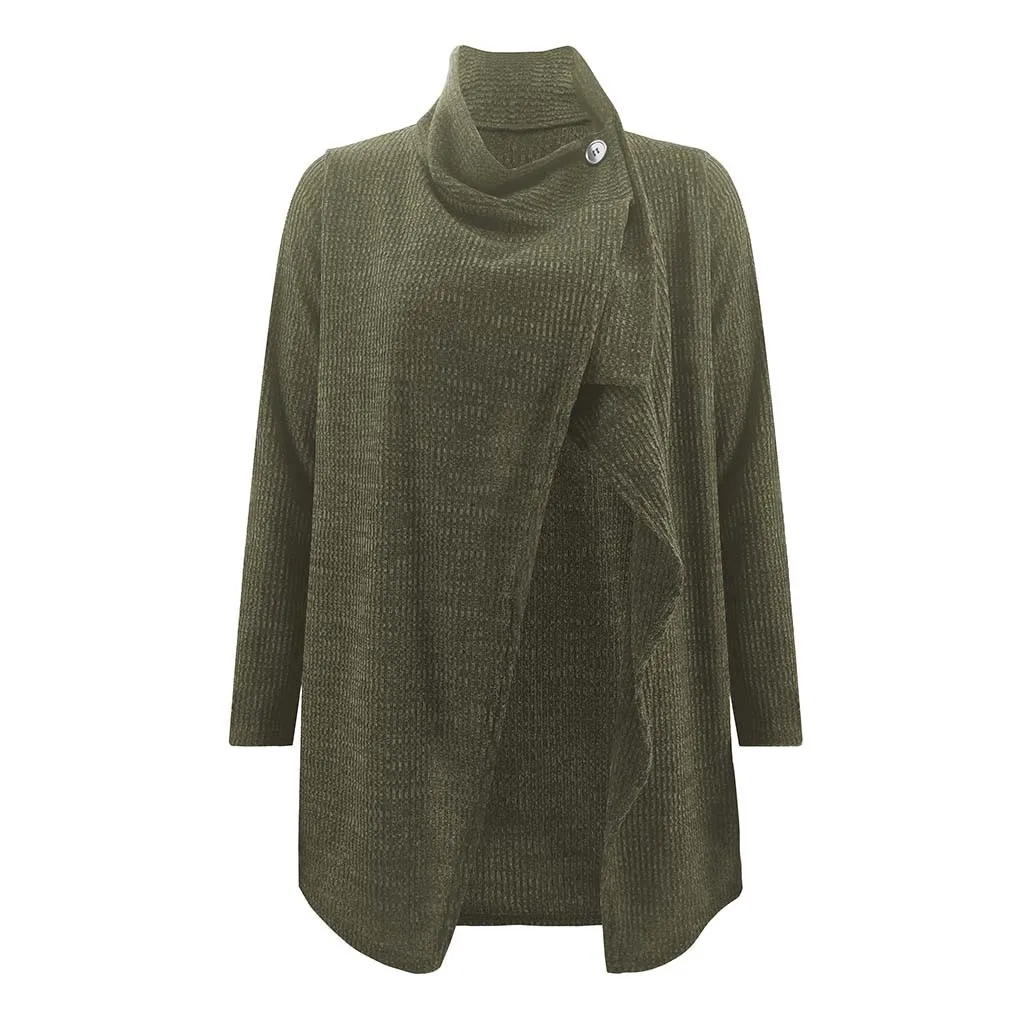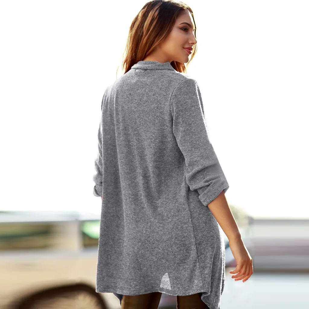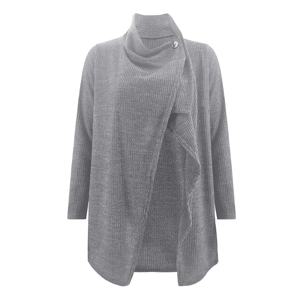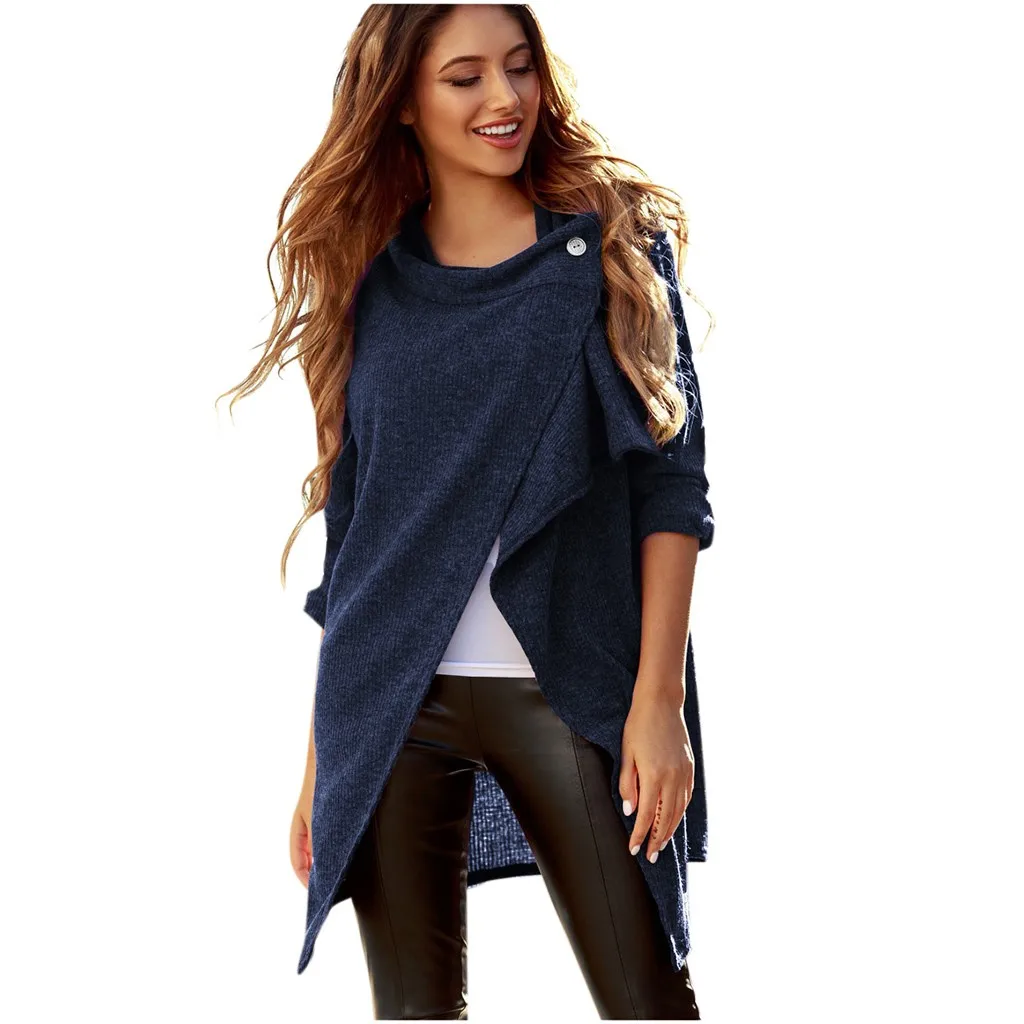 Мода женщин с длинным рукавом Твердые кнопки пальто Блузка Топ Повседневная Свободная Толстовка