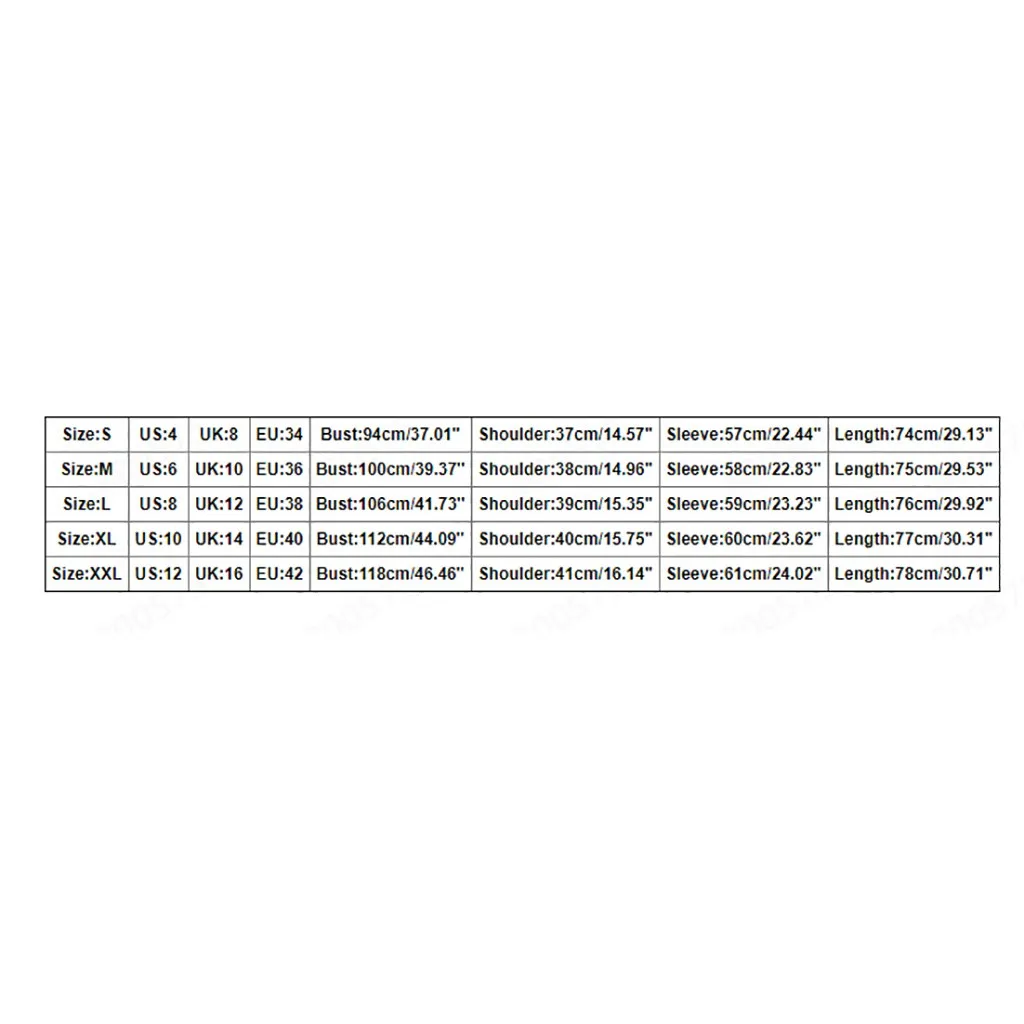 Размер Свяжитесь с нами Великобритания ЕС Обхват груди Сумка на плечо Рукава Длина S 4 8 34 94 см/37,01'' 37 см/14,57'' 57 см/22,44'' 74 см/29,13'' М 6 10 36 100 см/39,37'' 38 см/14,96'' 58 см/22,83'' 75 см/29,53'' L 8 12 38 106 см/41,73'' 39 см/15,35'' 59 см/23,23'' 76 см/29,92'' XL 10 14 40 112 см/44,09'' 40 см/15,75'' 60 см/23,62'' 77 см/30,31'' XXL 12 16 42 118 см/46,46'' 41 см/16,14'' 61 см/24,02'' 78 см/30,71''