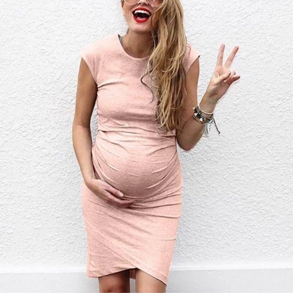 Модный дизайн: простое и удобное платье с короткими рукавами на талии для беременных.