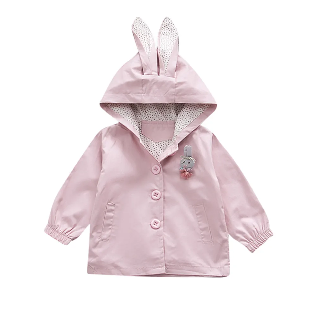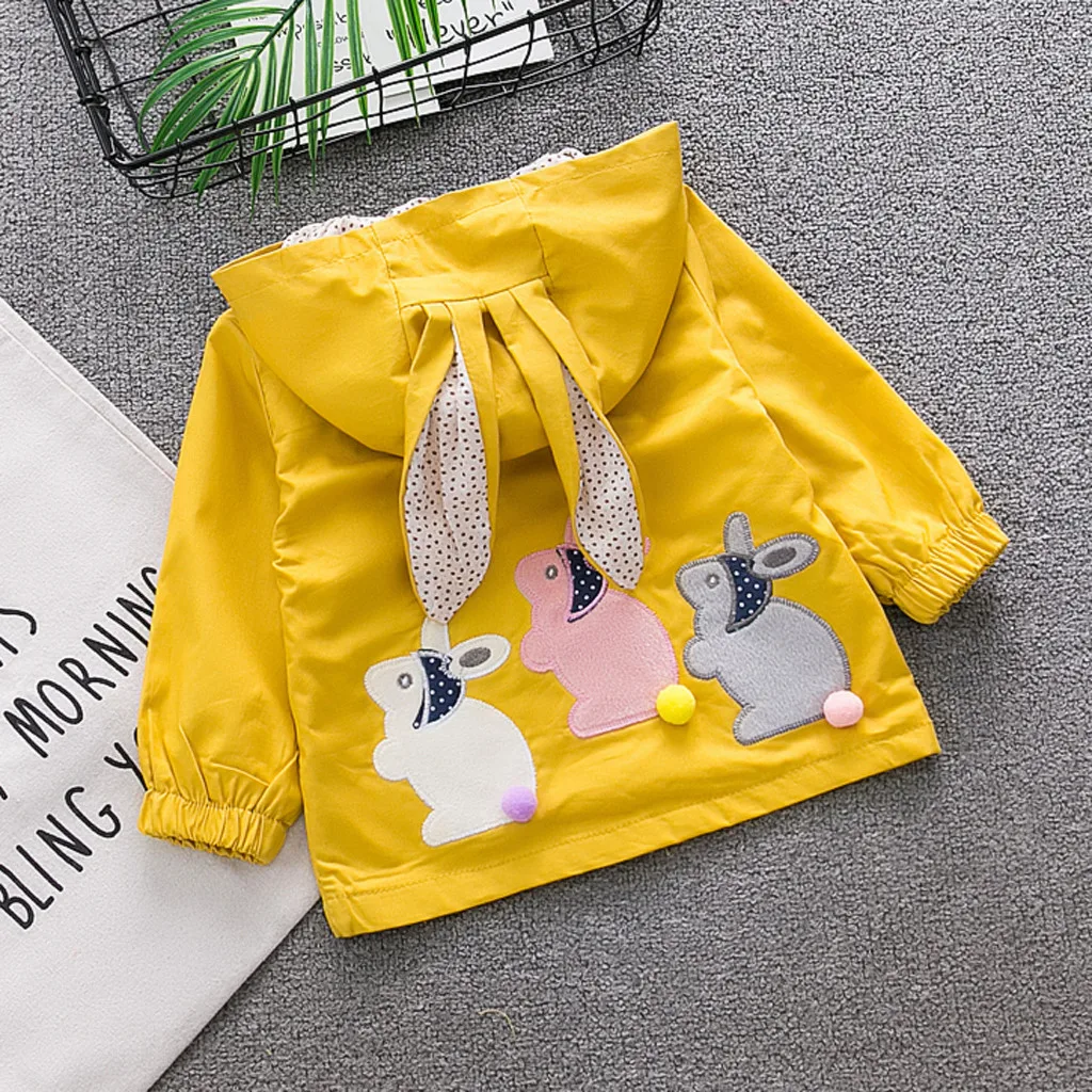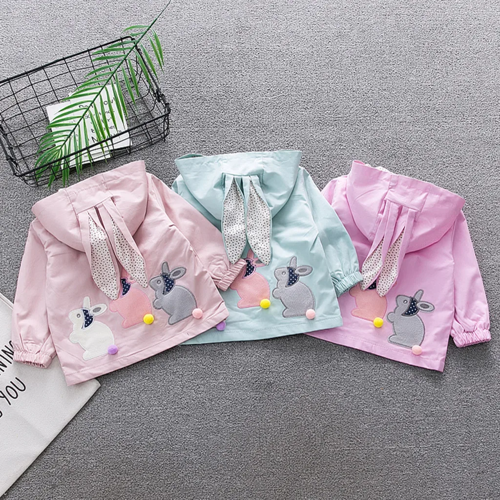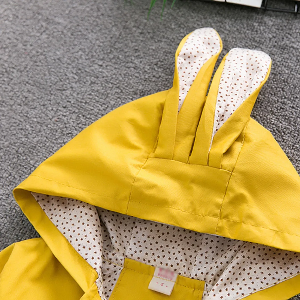 Пальто с капюшоном и заячьими ушками для маленьких девочек; Ветрозащитная Милая повседневная одежда с принтом; Привлекательная верхняя одежда; Сезон весна-осень; chaquetas