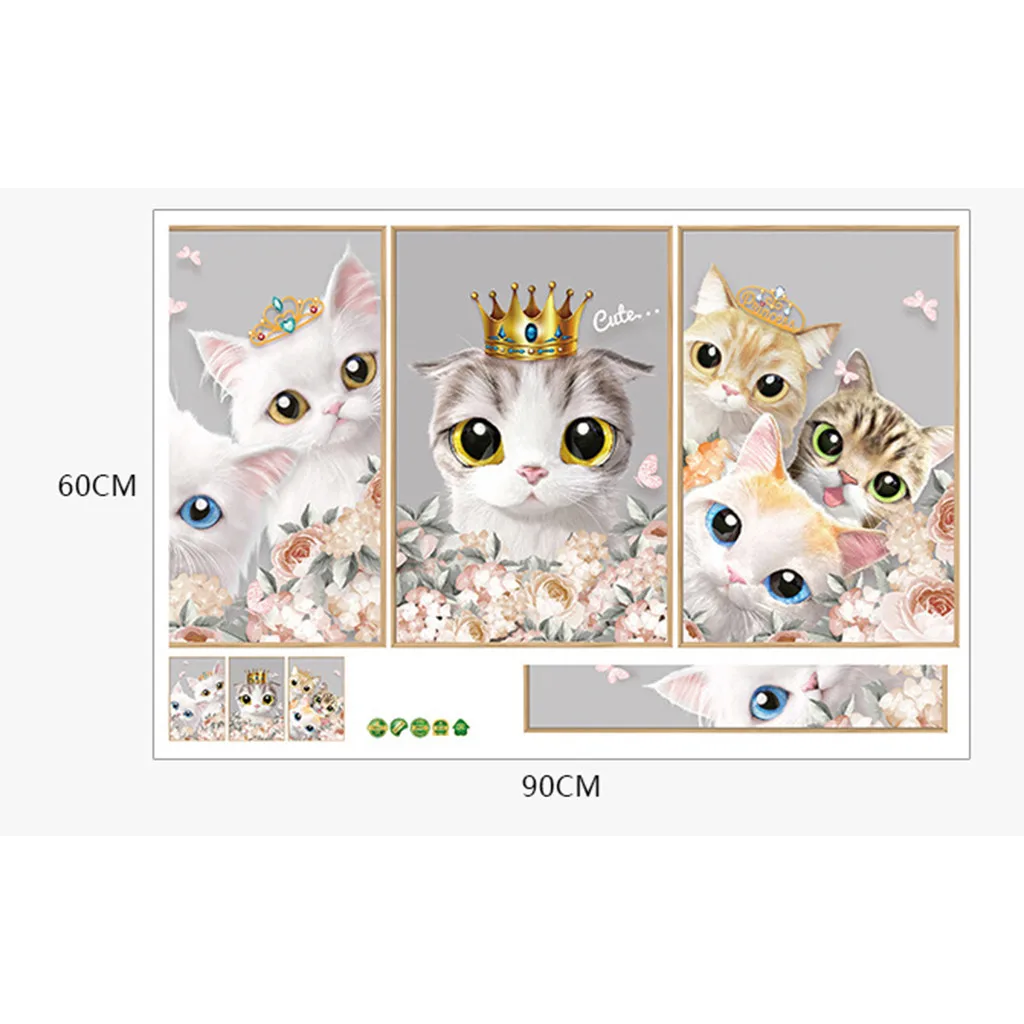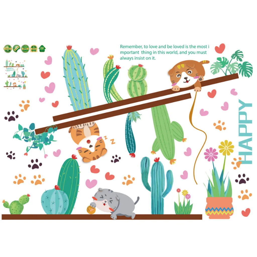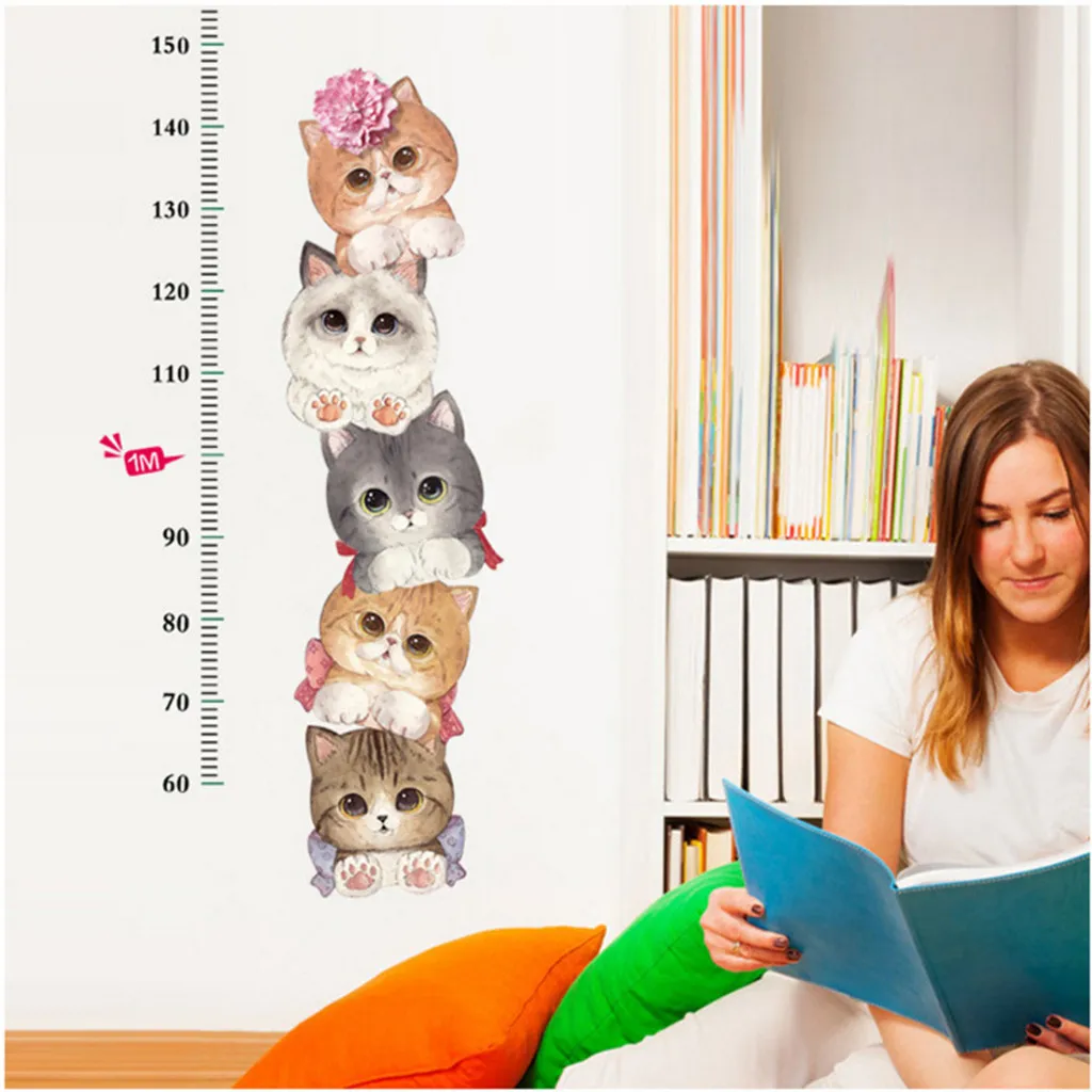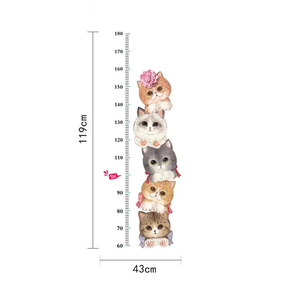 Мультяшные животные кошка котенок кактус Высота Мера Стикер на стену для детских комнат диаграмма роста Декор детской комнаты постер на стену