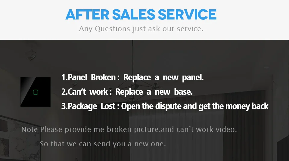 PS: если сенсорный переключатель не может работать нормаллу, пожалуйста, отключите автоматические выключатели входного питания, через 1 минуту (после выключения индикатора светильник) Для повторного открытия.