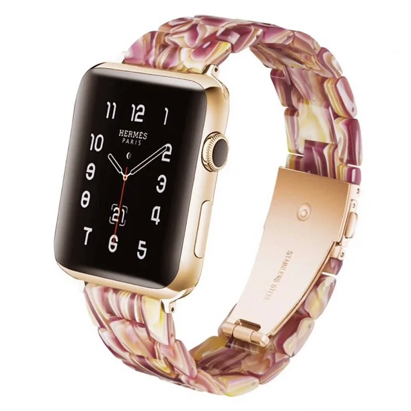 【Application】совместим со всеми 38 мм (40 мм) 42 мм (44 мм) iWatch Apple Watch, включая серии 5 4, серии 3, серии 2, серии 1, Sport, Hermes, nike +, Edition и т. Д. Подходит для всех запястья меньше, чем 8,7 '', почти для подавляющего большинства людей. [Самый крутой дизайн] дизайн этого ремешка действительно классный, ослепительный и стильный, он привлечет внимание других. Удобно носить, приятно для глаз, это абсолютно захватывающе. 【Водонепроницаемость 】в общем-подходит для мытья рук; Плавания и Сноркелинга, но не подводного плавания. Роскошь, благородство, элегантность и долговечность достаточно для работы и достаточно стильной для путешествий. 【Удобный в ношении 】экстремальная легкость делает его очень удобным в носке, кроме того, приятный для кожи. Каждый кусок смолы медленно полируется опытными искусственниками. В сочетании с премиальной черепаховой смоляной, она предлагает новый браслет для ваших Apple watch. Легче, чем металлический ремешок из нержавеющей стали.