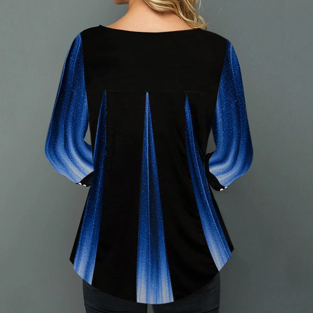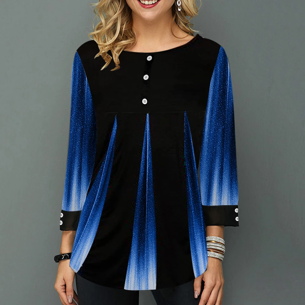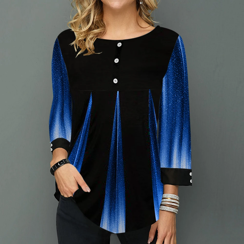 Модная женская Свободная блузка с круглым вырезом, рукавом 3/4, пуговицами и принтом размера плюс
