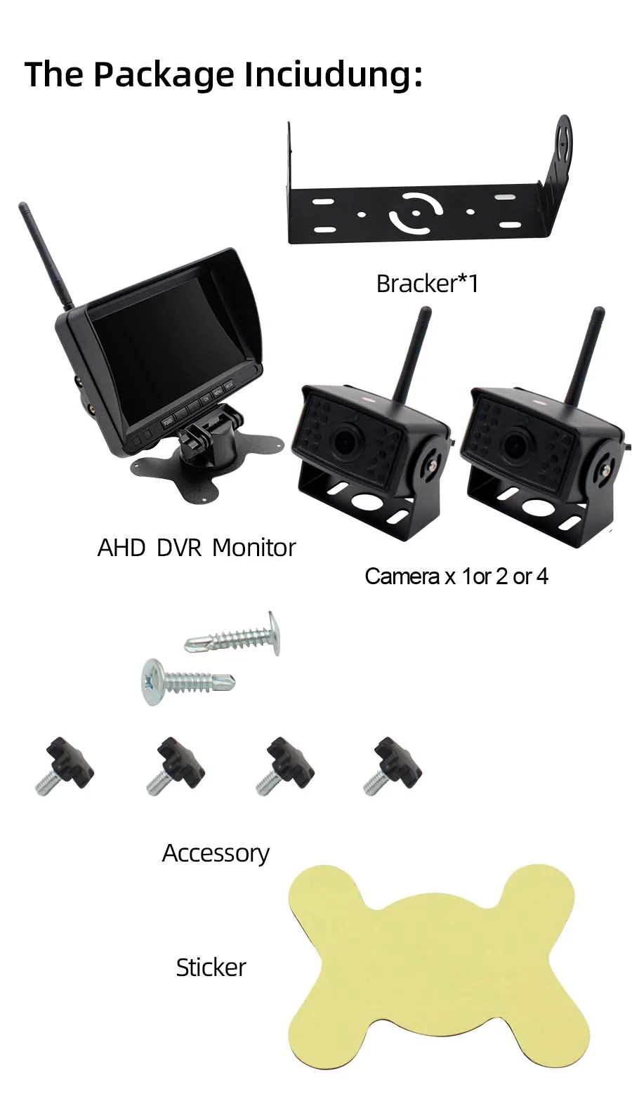 * Технология AHD может беспроводной передачи сверхдальних (200 м) видеосигналов высокой четкости; она принимает передовые технологии разделения сигналов Y/C и аналоговой фильтрации, который может эффективно уменьшить шум цвета в высокочастотной области и снижение изображения. По сравнению с традиционным CVI сигналом, более четкое и продвинутое разделение ярких цветов, фильтрация сигналов, технология 3D шумоподавления, более высокая четкость изображения. 2020 год новые высококачественные продукты высокой четкости. * Сильный беспроводной AHD сигнал: 100% без помех, без дополнительной проводки. Беспроводная камера заднего вида может похвастать устройством AHD сигнала излучения с эффективным диапазоном сигнала 100 м, который обеспечивает стабильные и плавные беспроводные сигналы даже при скорости автомобиля 75 милей/ч. * Встроенный беспроводной модуль: не нужно беспокоиться о том, как монитор и камера. Соответственно крепление 7-дюймовый монитор и камера заднего вида на ваш автомобиль, мощность устройства, начните водить прямо сейчас! * Превосходное качество: беспроводной монитор заднего хода может похвастать водонепроницаемым уровнем IP69 обеспечивает идеальный обзор во всех видах погоды. Вам никогда не придется беспокоиться о попадании пыли, лягушки, тумана или воды даже во время сильного ливня. Он автоматически поворачивается к функции ночного видения, благодаря 18 инфракрасным светодиодный • Аналоговая камера высокого разрешения: эта Автомобильная камера заднего вида является установлены в изысканном дизайне инфракрасный Ночное видение камера с 6-слойный фильтр из оптического стекла, который имеет удивительный обработки изображений AHD 225 чипы, который является анти-блики и effective1280 * 720 пикселей, яркие, четкие и красочные дисплеи. Угол обзора 170 ° обеспечивает покрытие всех слепых зон * Беспроводной AHD видео регистратор монитор, он использует sd-карту (Макс 128 ГБ) в качестве устройства хранения. Записывает до четырех каналов полноцветного видео. H.264 высокопрофильное Сжатие видео. * 4 канала 1280*720 P Разрешение для AHD ИК-камера. 25/30 кадров в секунду для каждого канала. Локальное воспроизведение видео в режиме реального времени.