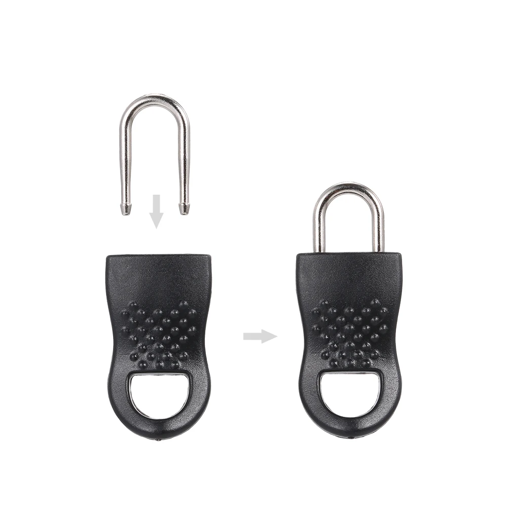 Разумно подготовить несколько фиксаторов на молнии заранее только в чехол. Этот фиксатор на молнии очень прост в установке за считанные секунды без использования инструментов. Сначала проденьте металлический запорный штифт через петельку на молнии, затем вставьте его в 2 отверстия на пластиковой закладке и нажмите на него, пока он не запирается.