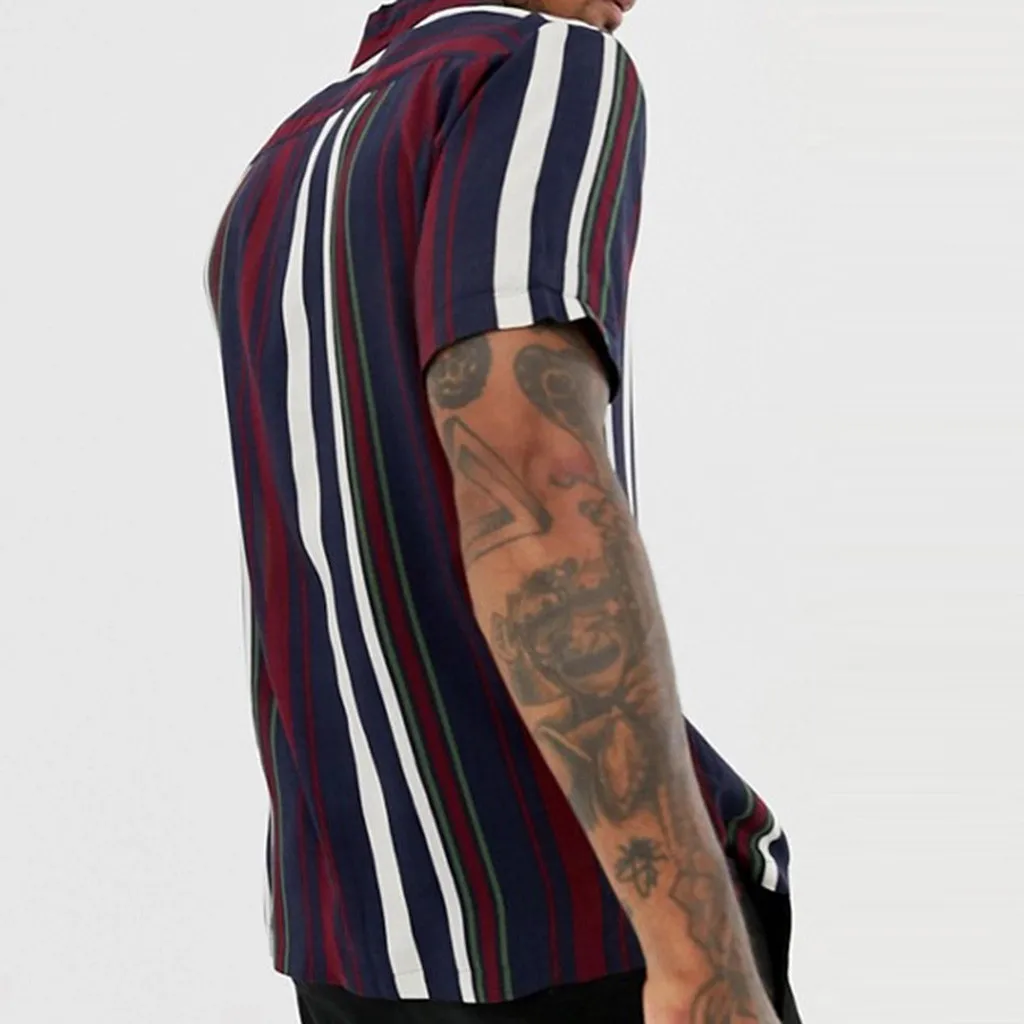 Мужская разноцветная Асимметричная футболка в полоску, с короткими рукавами и воротником на пуговицах