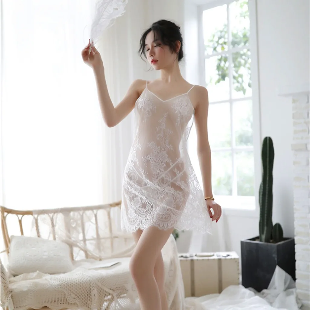 Сексуальная перспективная кружевная ночная рубашка, модная женская сетчатая мини-Пижама с v-образным вырезом и открытой спиной, Ropa Dormir Mujer, новинка 2020, хит продаж