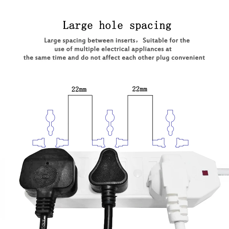 Rated current: 10A Rated voltage: 250V Rated power: 2200W Conductor material: copper Shell material: ABS Size: 180 * 50 * 27 mm Feature: 1.Large hole spacing: Large spacing between insertsSuitable for the use of multiple electrical appliances at the same time and do not affect each other plug convenient. 2.Power light: Check if the socket is energized. Universal outlet: Compatible with plugs of AU(3Pin),AU(2Pin),US(3Pin),US(2Pin),EU(4.8/4.0mm),UK,Small South Africa,Israel and other specifications. package include: 1PCS power strip