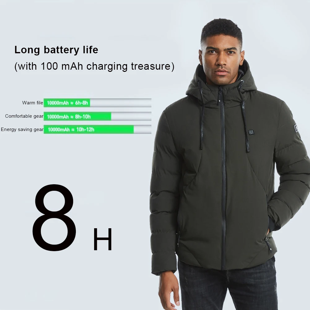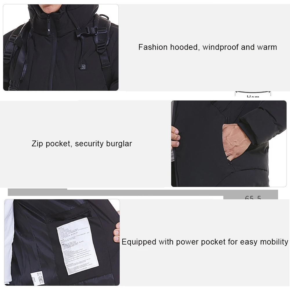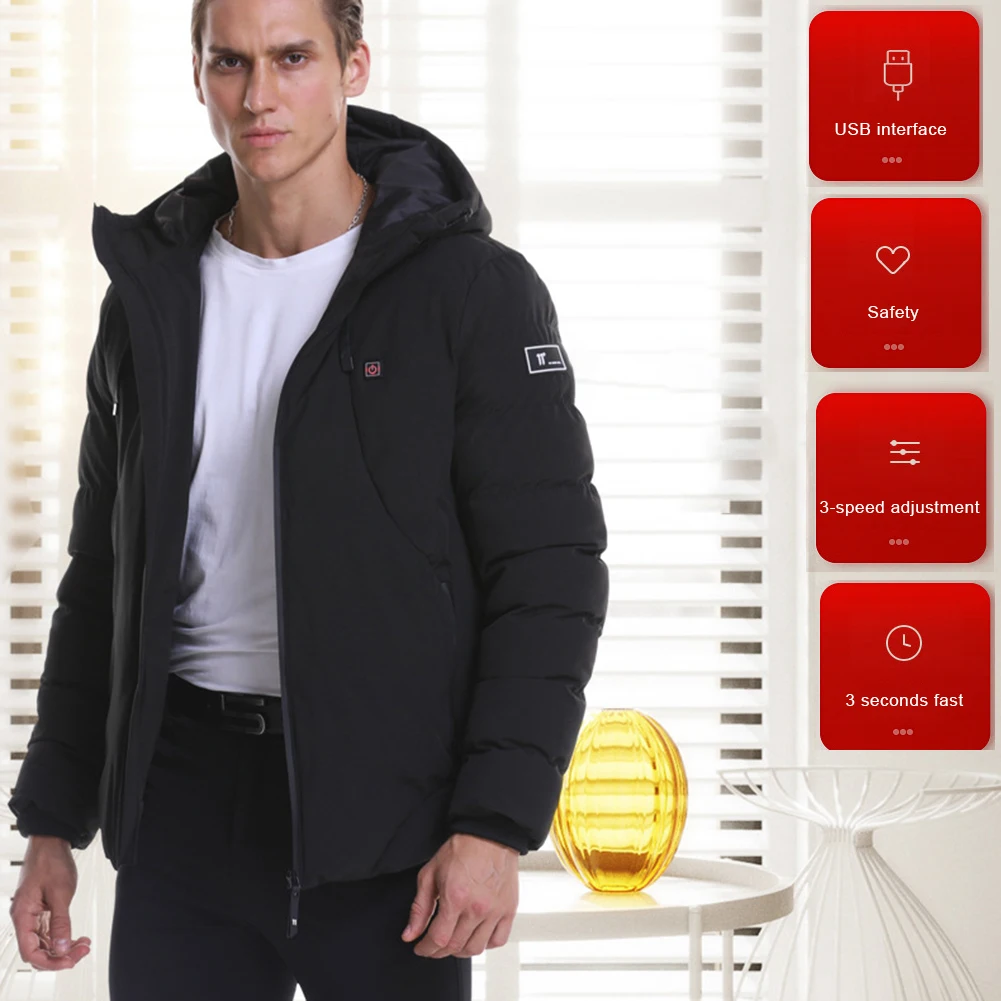 *3.Heating jacket with hood makes you feel comfortable and warm even without heating. Professional waterproof shell, rain proof, filling cotton, plush detachable hood, in cold nights to resist the wind.