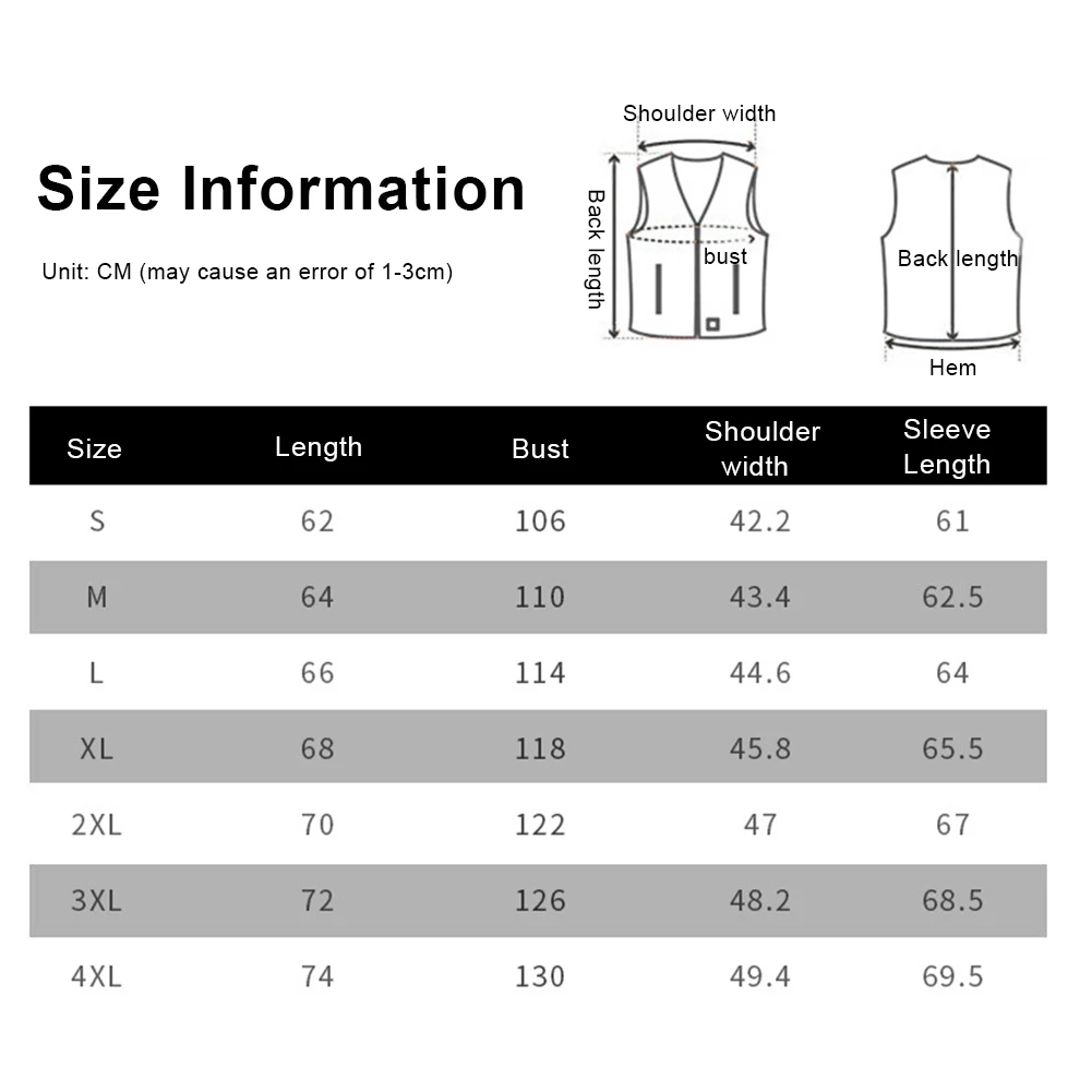 *1.The multi-stage safety system ensures that a short circuit is prevented when the entire battery-wide man's heating jacket is covered.