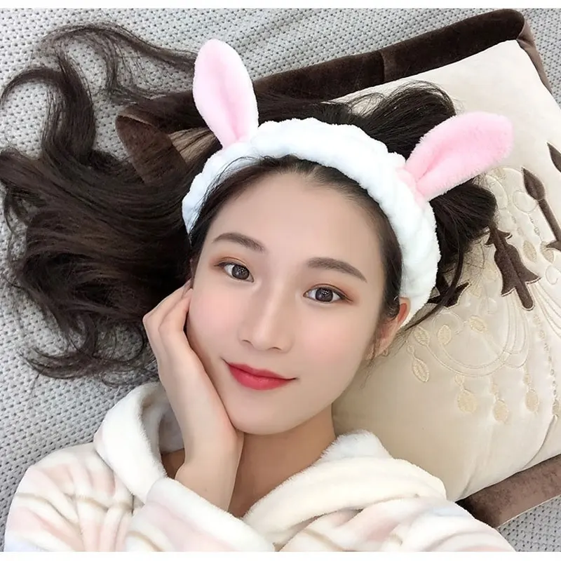 Фланелевый милый ободок с кроличьими ушами для девочек, Женский тюрбан карамельного цвета, простая маскирующая модная повязка для волос, повязка на голову