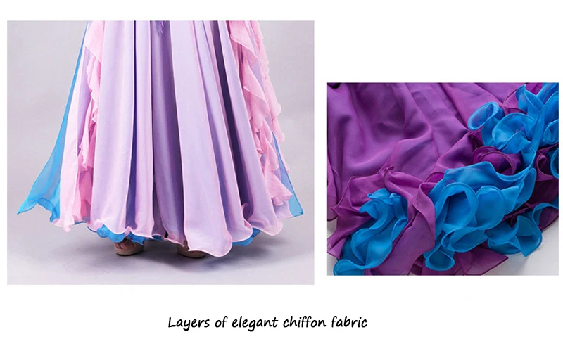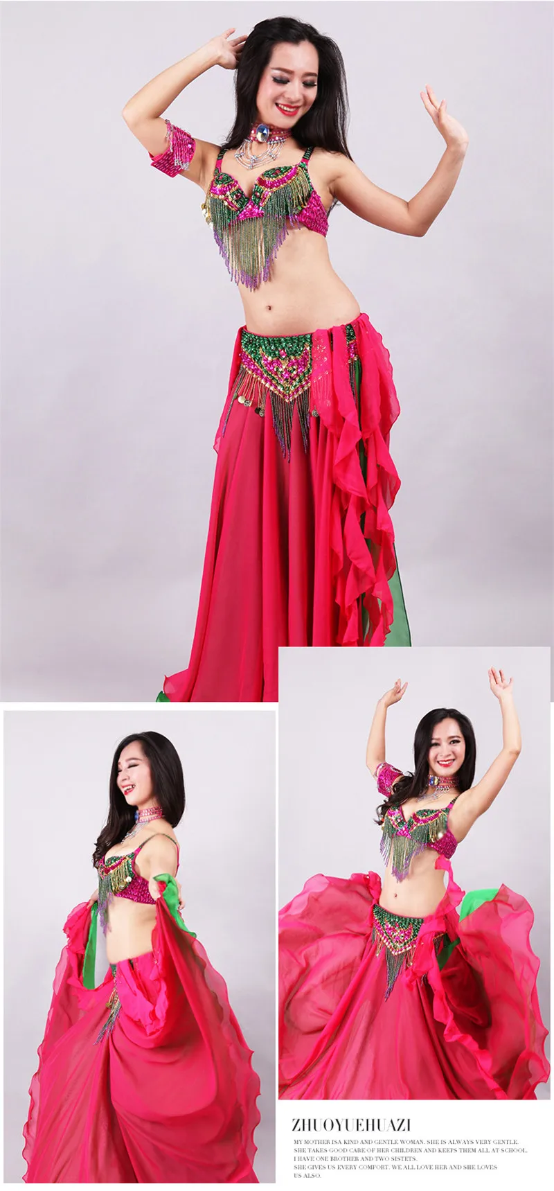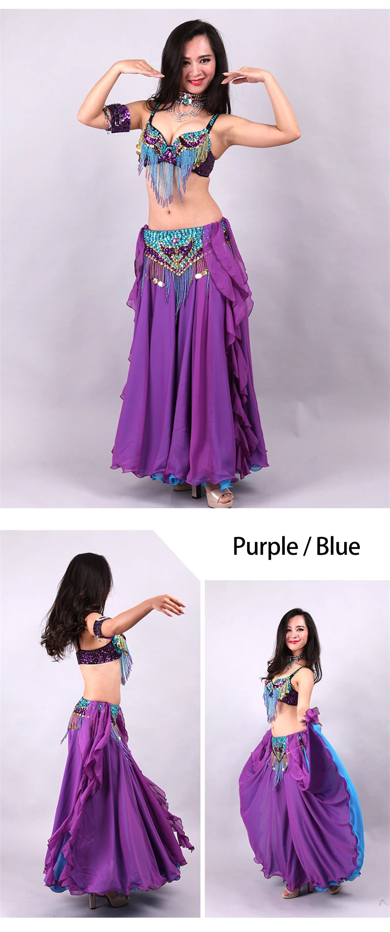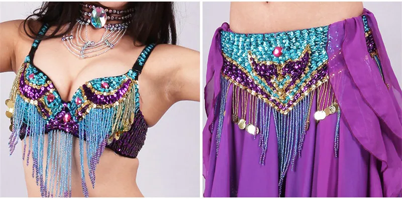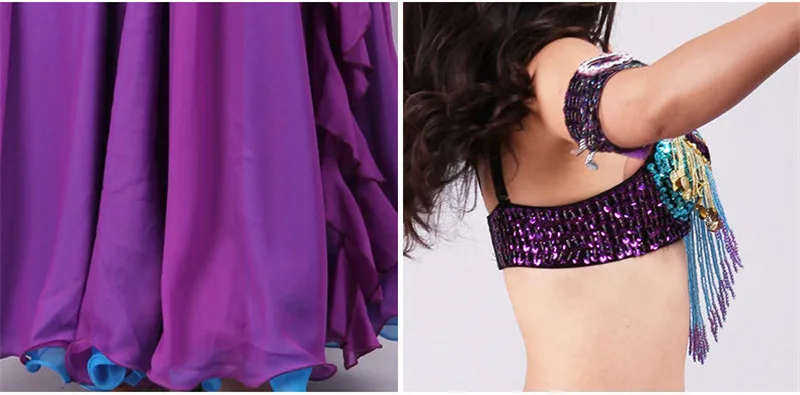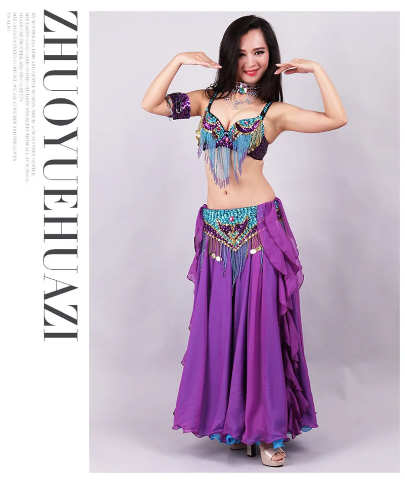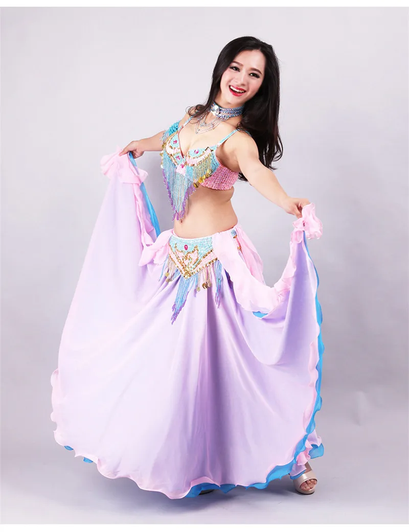 5pcs Sets Belly Dance Costume For Women Ladies Bellydance Beaded Bra&Belt Two-colour Chiffon Skirt Stage Performance Dancewear