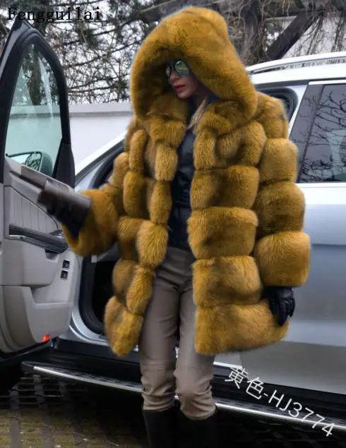 Женская зимняя куртка из искусственного кроличьего меха с капюшоном - купить по